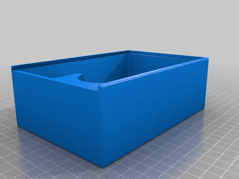 Tôi dùng pynej's Ultimate Box Generator để làm cái hộp, rồi thêm một cái khối và lỗ khoét ngón tay trong PrusaSlicer. Không cần dùng Rafts hay Supports.