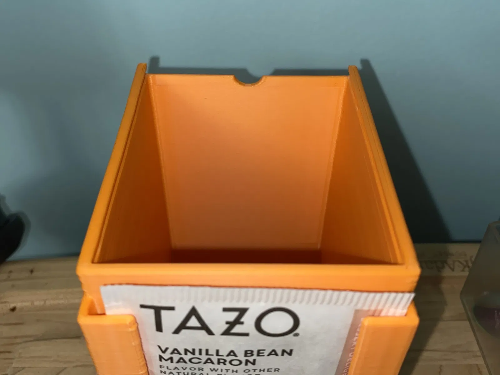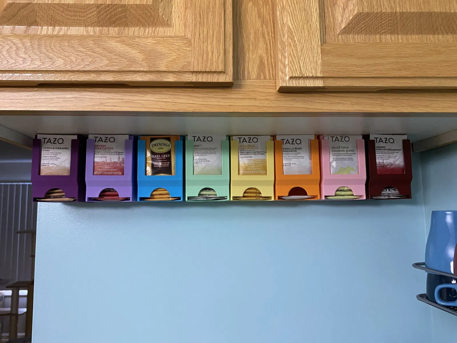 Hộp đựng trà được scale lại cho vừa với các loại trà túi lọc cỡ lớn như Tazo, thích hợp để treo dưới gầm tủ, giúp tiết kiệm không gian và dễ dàng sử dụng.