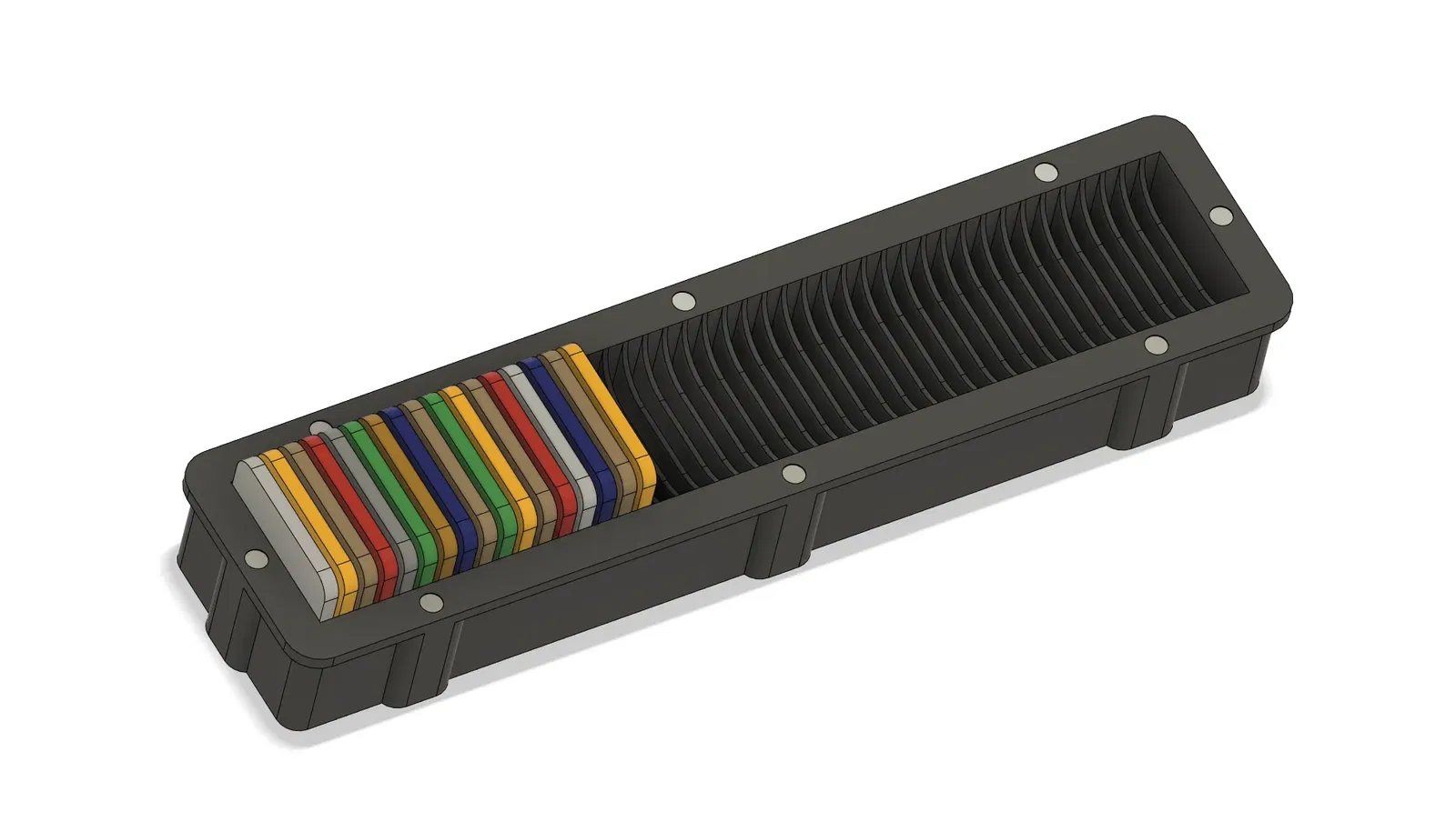 Tao cần cái gì đó gọn gàng hơn mấy cái hộp đựng swatch đẹp mắt ngoài kia, nên tao quyết định tự làm cái này để có thể cất vô ngăn kéo hoặc giấu đi mà không chiếm nhiều diện tích. Cái hộp swatch này tương thích với mấy cái swatch của Bambu Lab phổ biến nha. Dùng nam châm 3mm x 2mm để cố định nắp với thân hộp.