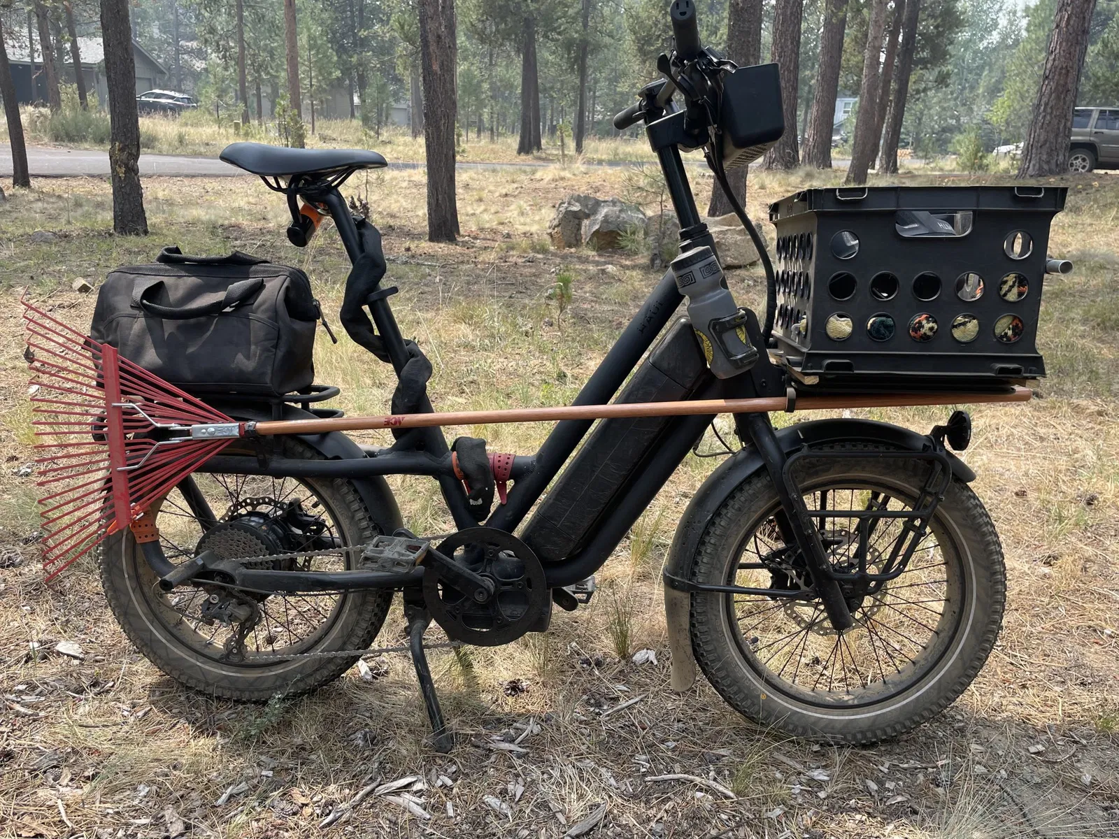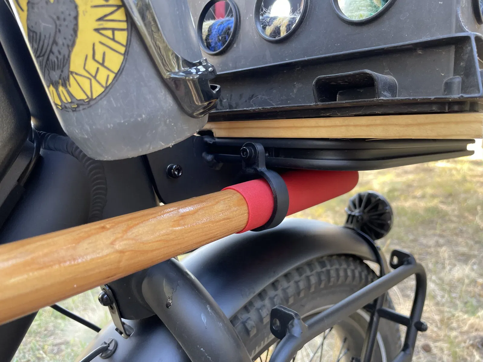 Một cách để mang cột trên xe đạp điện toàn cầu. Công cụ sân, cột lacrosse, thanh câu cá, v.v.