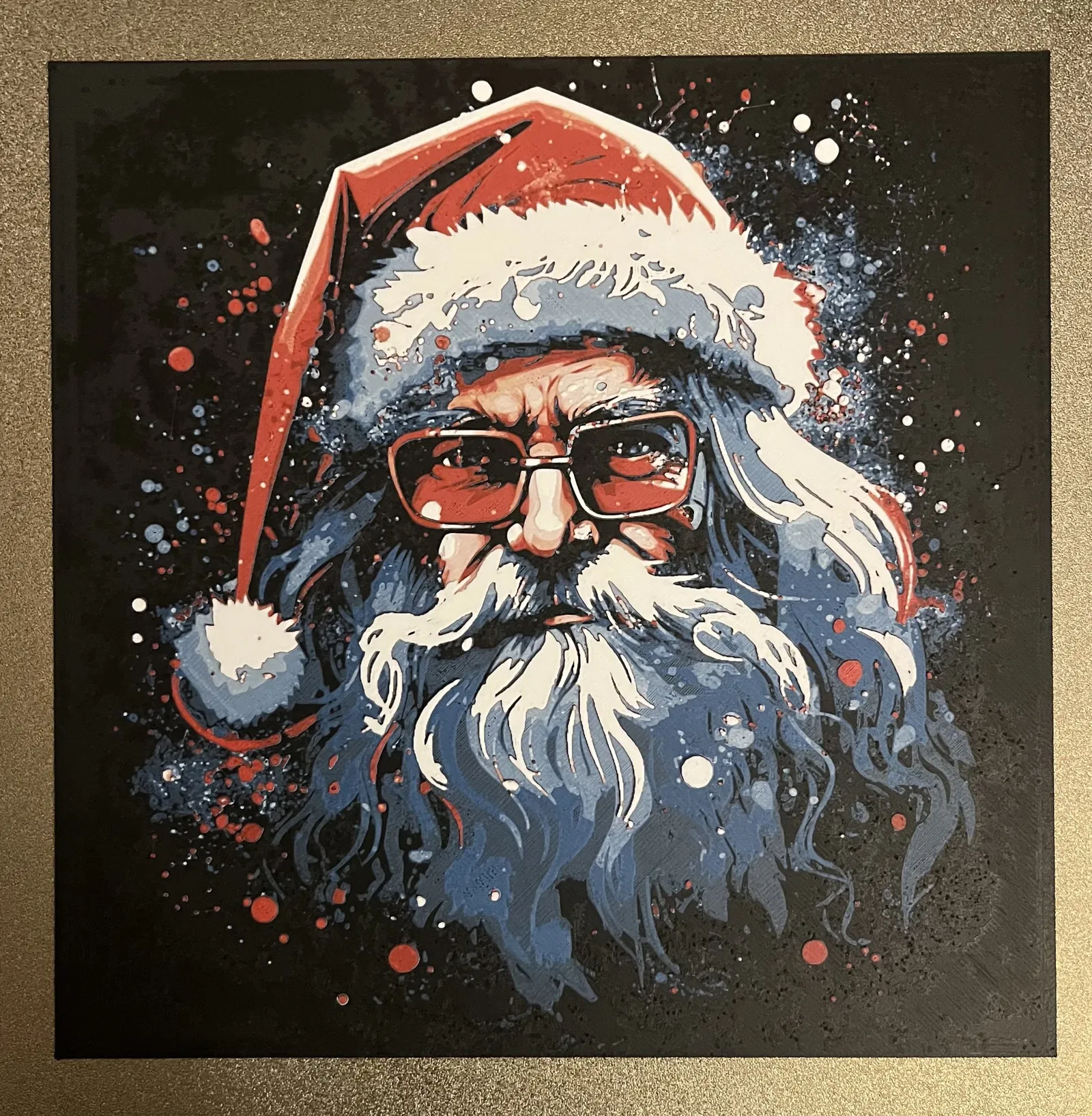 Mô hình Ông già Noel 'vẽ bằng sợi' 5 màu, in bằng HueForge chỉ với các lần đổi sợi filament, không cần MMU/AMS. Cài đặt chi tiết bao gồm tốc độ, độền, chiều cao lớp và hướng dẫn đổi sợi filament.