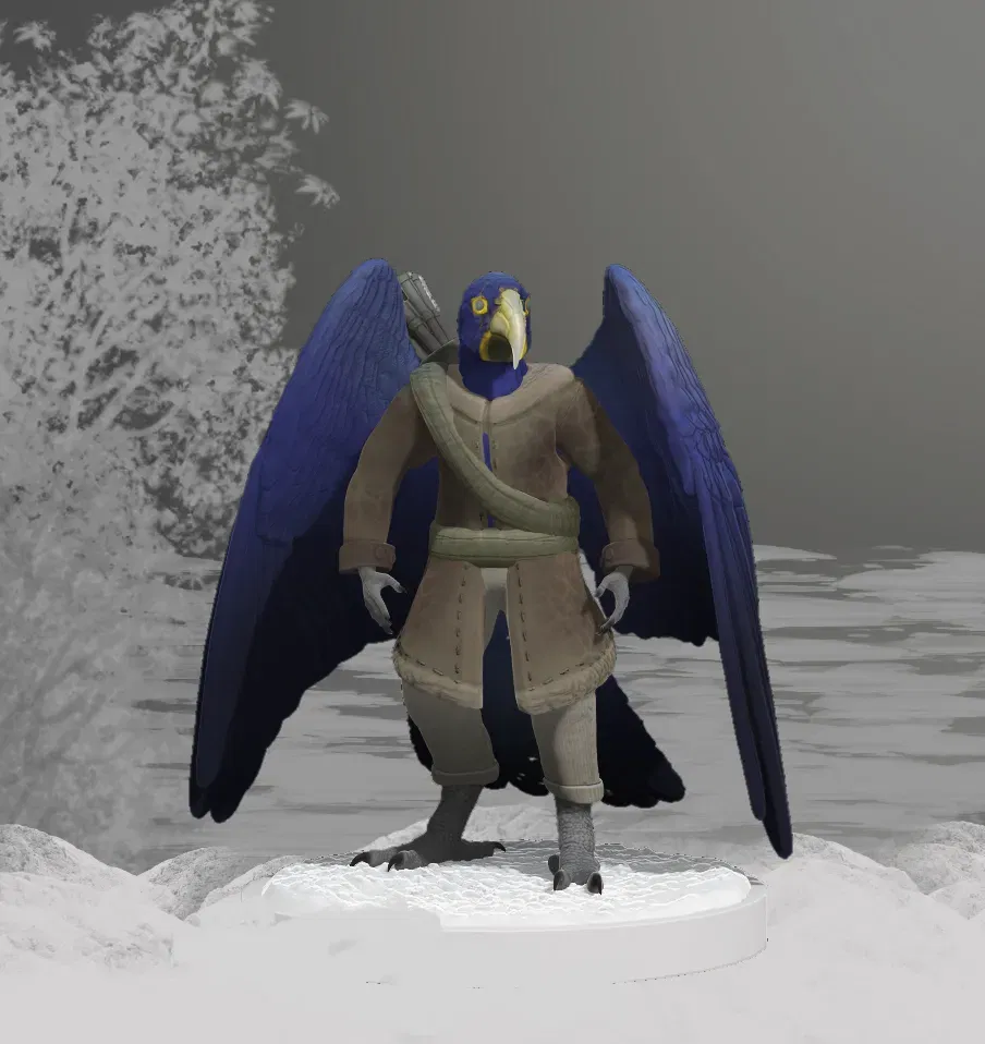 Khám phá mô hình Thuyền trưởng Goldbill, một aarakocra cướp biển dnd cực ngầu! Mô hình có 2 phiên bản (có/không đế), được điêu khắc tỉ mỉ bằng Zbrush và render bằng Blender. Khuyến khích in bằng máy resin để có chi tiết sắc nét nhất cho bàn chơi TTRPG của bạn.