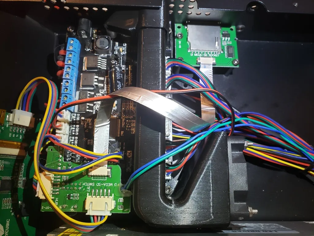 Đã phối lại ống dẫn quạt này để làm việc với quạt cổ phiếu 50mm, sử dụng các ốc vít M3 với các khe cho các đai ốc để gắn quạt một cách dễ dàng.