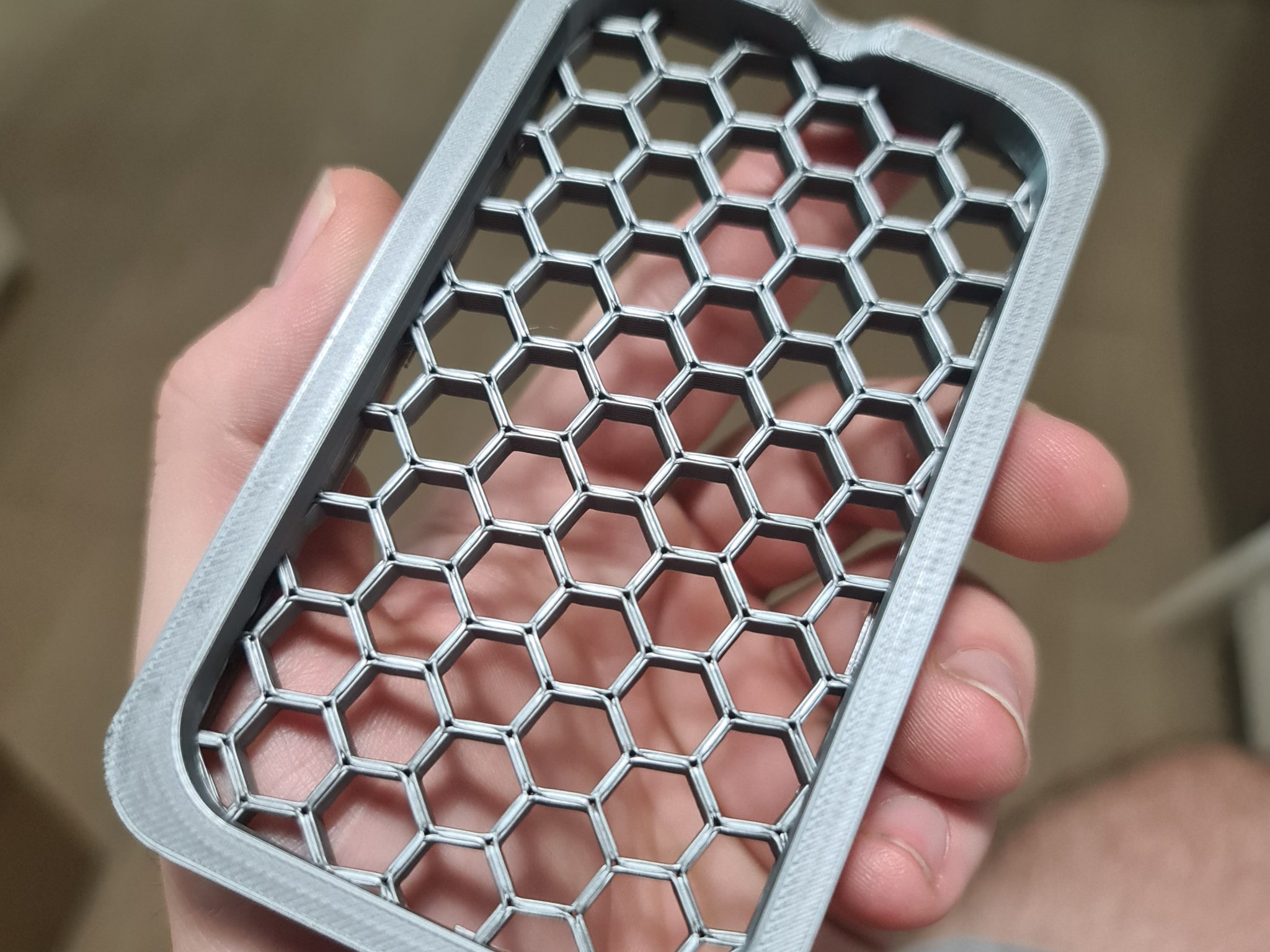 Có kèm theo một phiên bản đáy đặc, dành cho những ai muốn tùy chỉnh nó bằng các kiểu đổ đầy (infill patterns) và một phiên bản làm sẵn với các lỗ kiểu tổ ong.