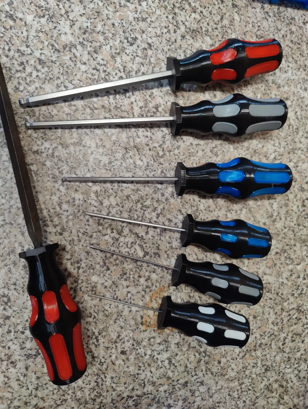 Tui hông thích cảm giác nhựa cứng khi làm việc với đồ nghề, nên tui tìm giải pháp cho nó. Và cái này ra đời. Một cái tay cầm tùy chỉnh được với các khe cắm tay cầm. Bạn có thể rất sáng tạo với màu sắc đó nha. Tui cũng làm nó lớn hơn, để vừa với bàn tay to của tui hơn. Tui in tay cầm bằng PETG và các khe cắm bằng TPU. Tui để sẵn file 3MF cho Bambulabs, với thiết lập in tối ưu cho phần đáy chắc chắn nơi lưỡi dao đi vào và phần trên nhẹ hơn để tiết kiệm vật liệu và thời gian in.