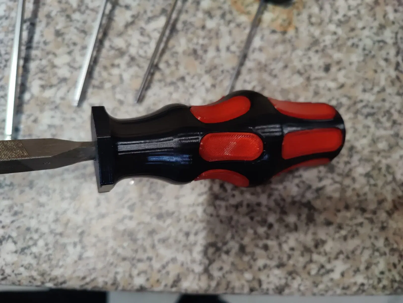 Tui hông thích cảm giác nhựa cứng khi làm việc với đồ nghề, nên tui tìm giải pháp cho nó. Và cái này ra đời. Một cái tay cầm tùy chỉnh được với các khe cắm tay cầm.