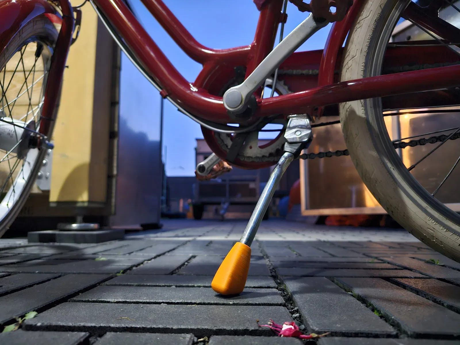 Cải thiện độ cao cho chân chống xe đạp của bé, giúp xe đứng vững hơn khoảng 15mm so với đế zin. In bằng PP để đảm bảo độ bền và chống va đập tốt.