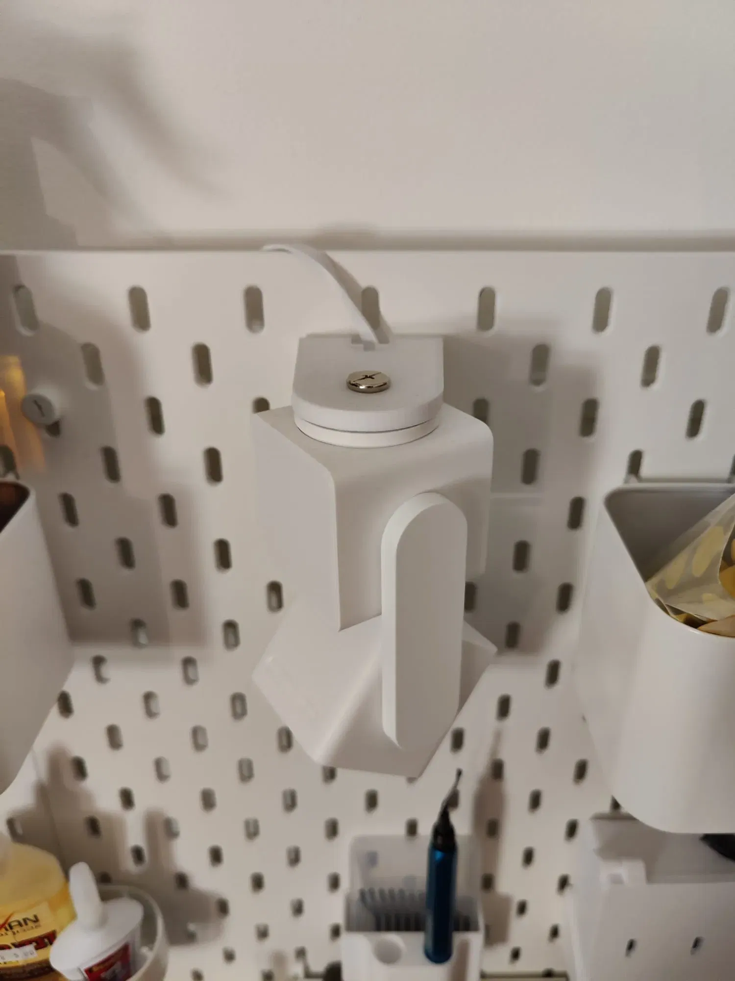 Chào bạn! Như tên của mẫu này, đây là một cái đế gắn cho camera Wyze Cam Pan V3 trên bảng pegboard Ikea Skadis. Nó là bản sao của đế gốc đi kèm với camera, chỉ có thêm phần gắn chốt pegboard.