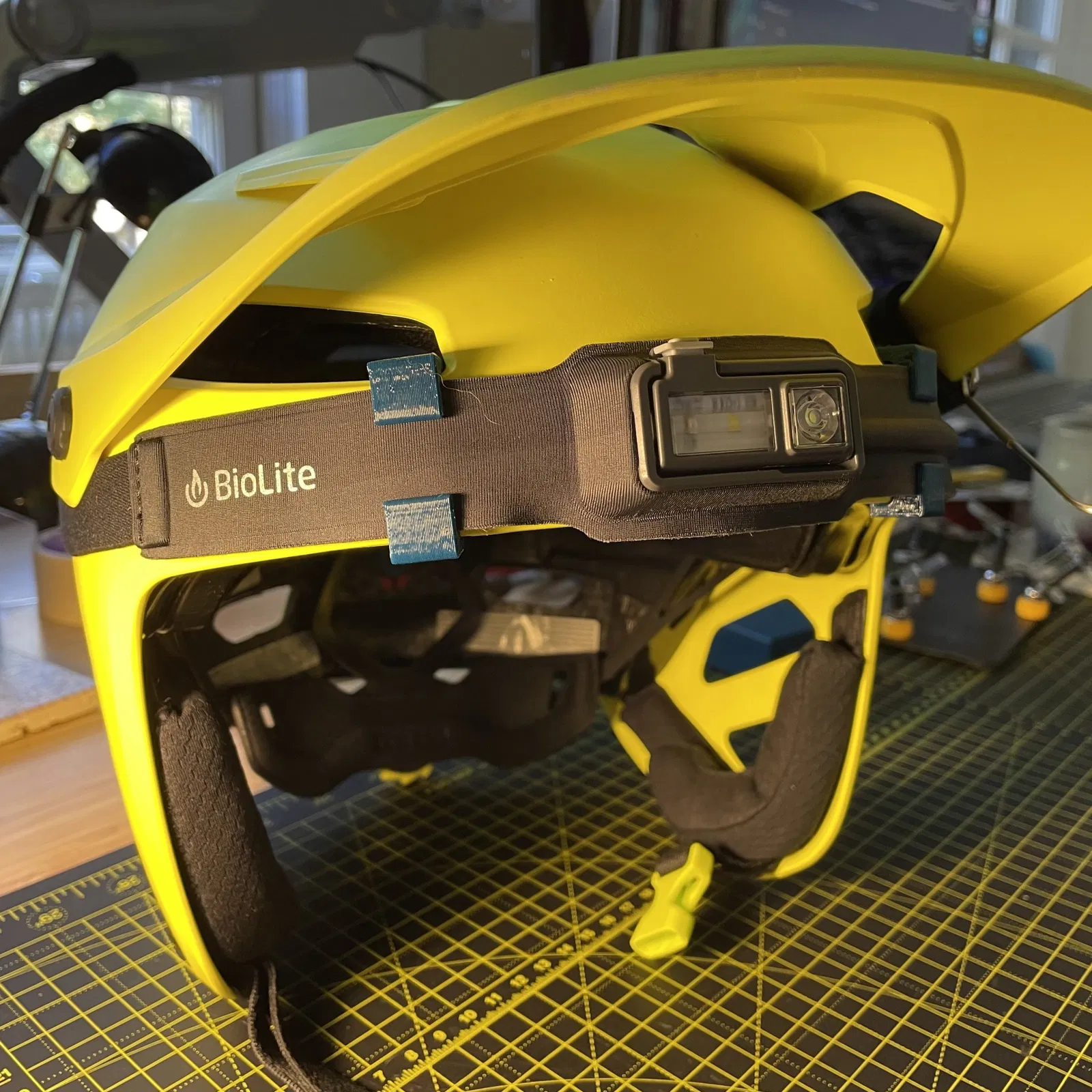 Kẹp giữ đèn pin trên mũ bảo hiểm Giro Tyrant (cỡ lớn). Có thể vừa với các cỡ khác, không chắc lắm.