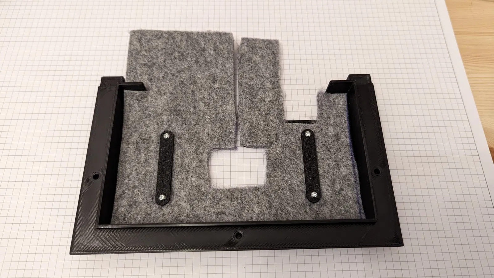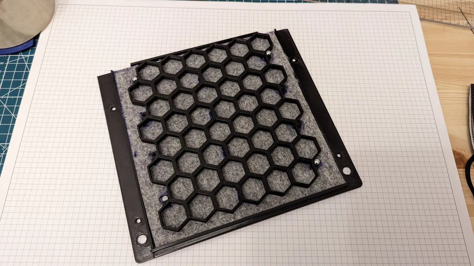 Sử dụng ốc M3 để kết nối các bộ phận giữ tấm tổ ong và/hoặc nỉ, và cố định tấm phía sau vào vỏ máy. Bạn cần 4 đến 8 ốc đồng nóng chảy khoảng 5mm.