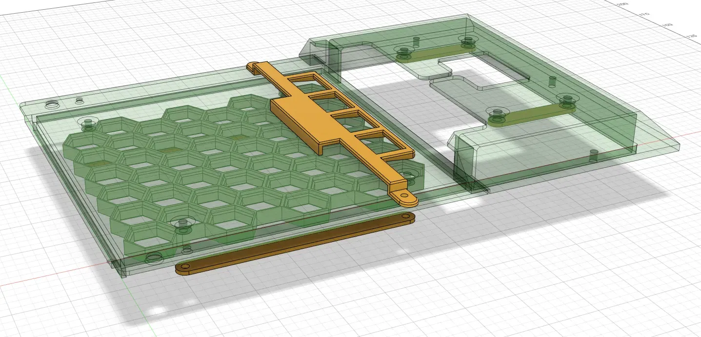 Trên hình ảnh mô hình Fusion 360, bạn có thể thấy các tấm nắp màu xanh lá cây. Các giá đỡ nỉ màu vàng (tùy chọn nếu bạn sử dụng nỉ) và tấm tổ ong màu trắng. Nếu bạn sử dụng nỉ nhưng không muốn tấm tổ ong, bạn có thể in thêm hai giá đỡ nỉ tùy chọn cho tấm phía sau.