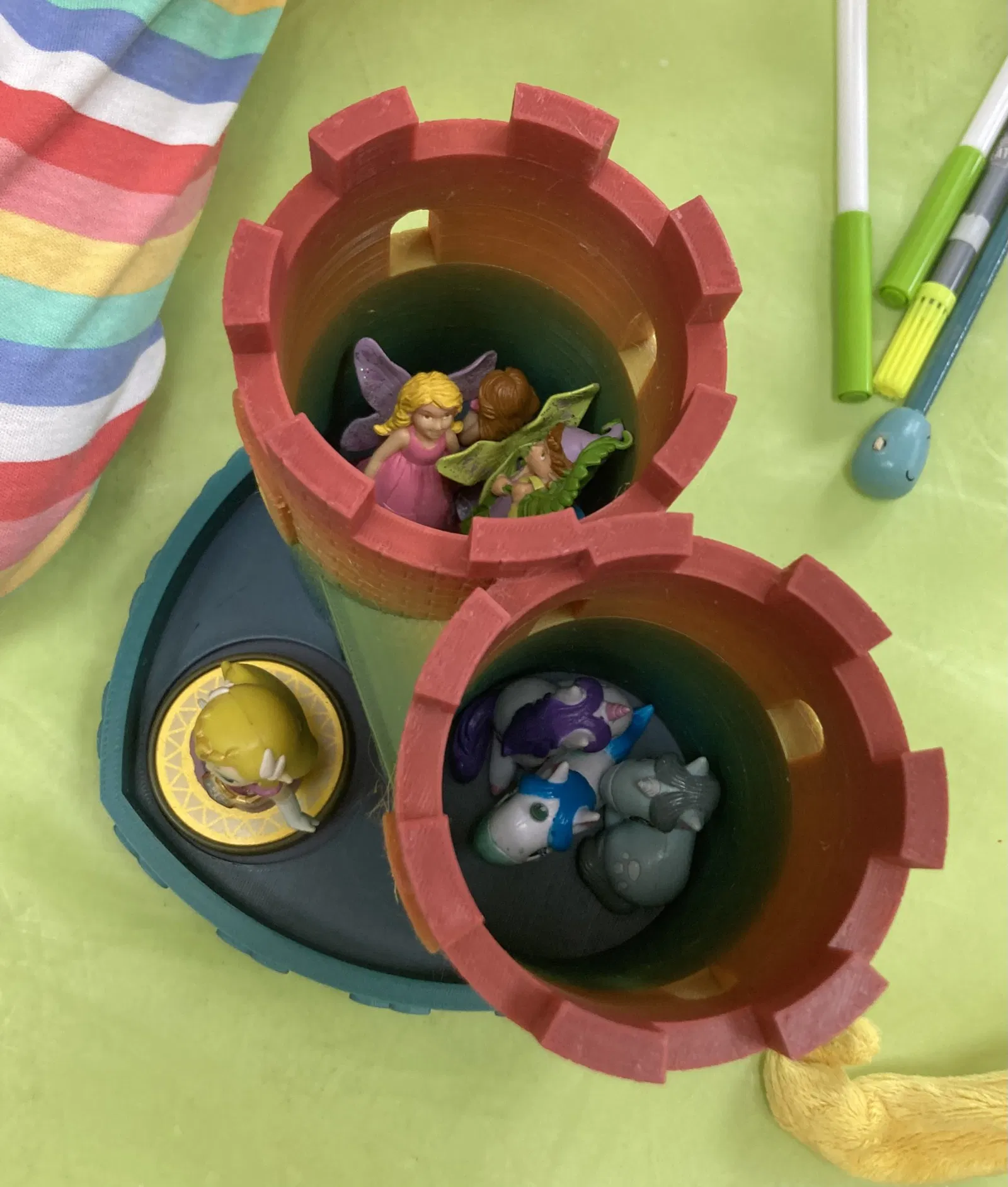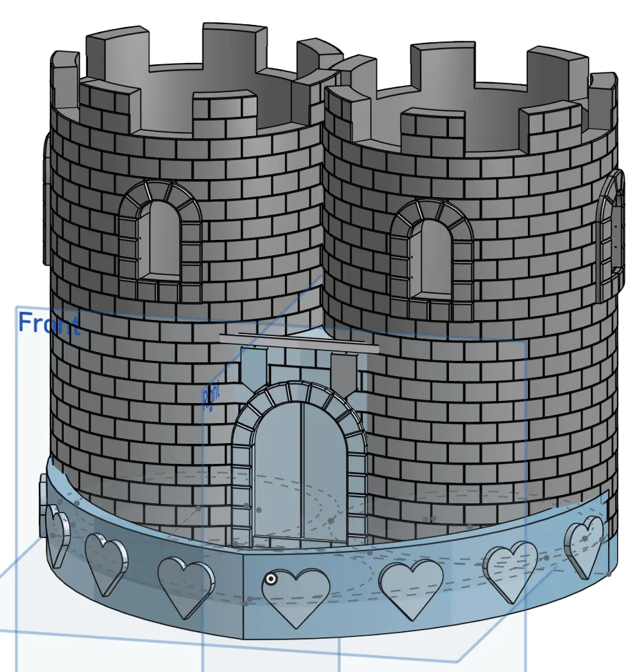 Con gái tui nó nhờ làm cái chưng bút hình lâu đài có đế trái tim, tô màu cầu vồng. Tui lấy cảm hứng từ mấy cái chưng bút lâu đài khác trên Printables. Tui làm cái này để tập xài Onshape với làm mô hình 3D luôn. In ra màu cầu vồng đẹp lắm, xài PLA là chuẩn bài.