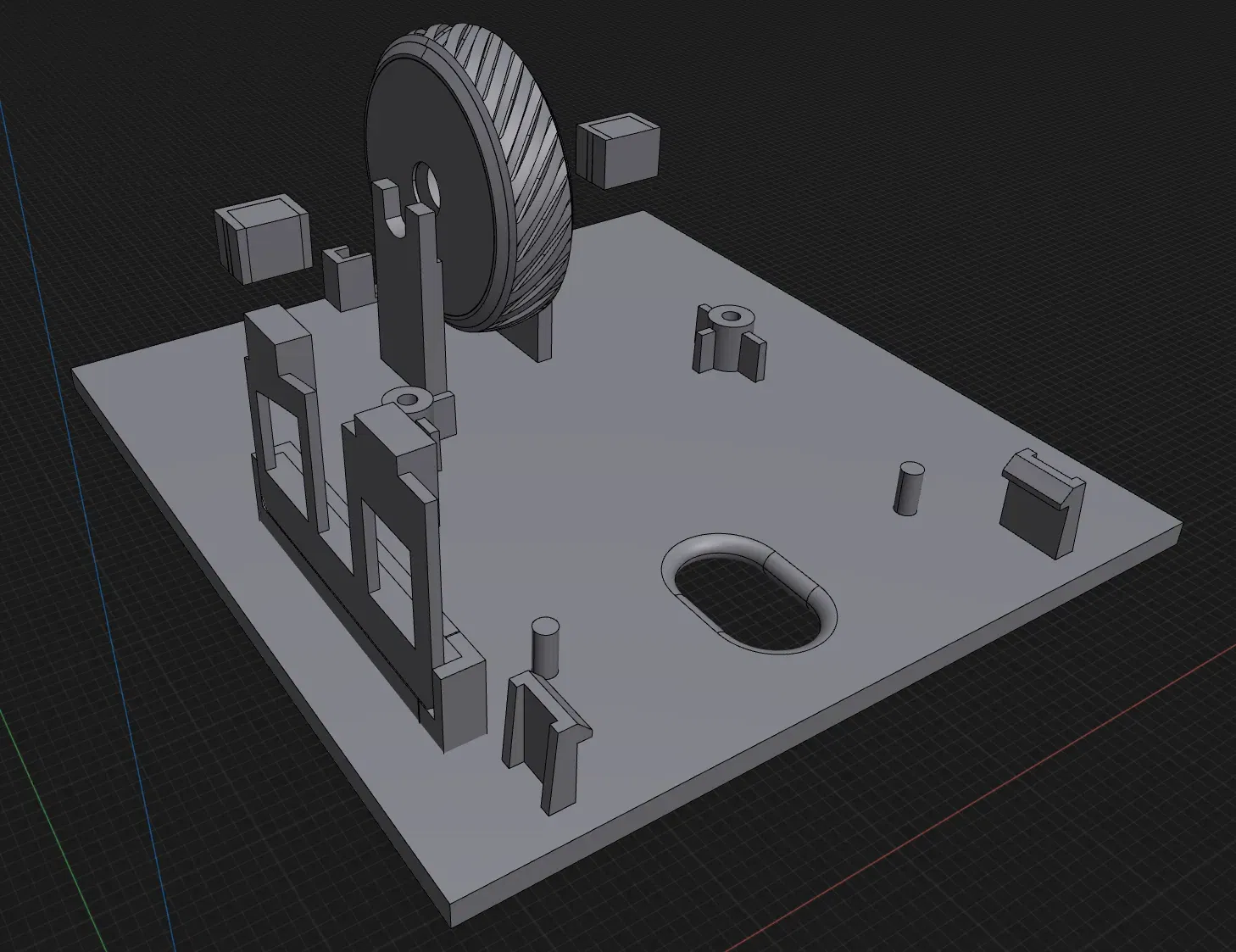 Bản phác thảo chi tiết đế chuột MM710, bao gồm vị trí các nút bấm, PCB, nút hông, dây, bánh lăn và cảm biến. File định dạng .step, lý tưởng cho các dự án tùy chỉnh và sáng tạo. Lưu ý: không có nút DPI.