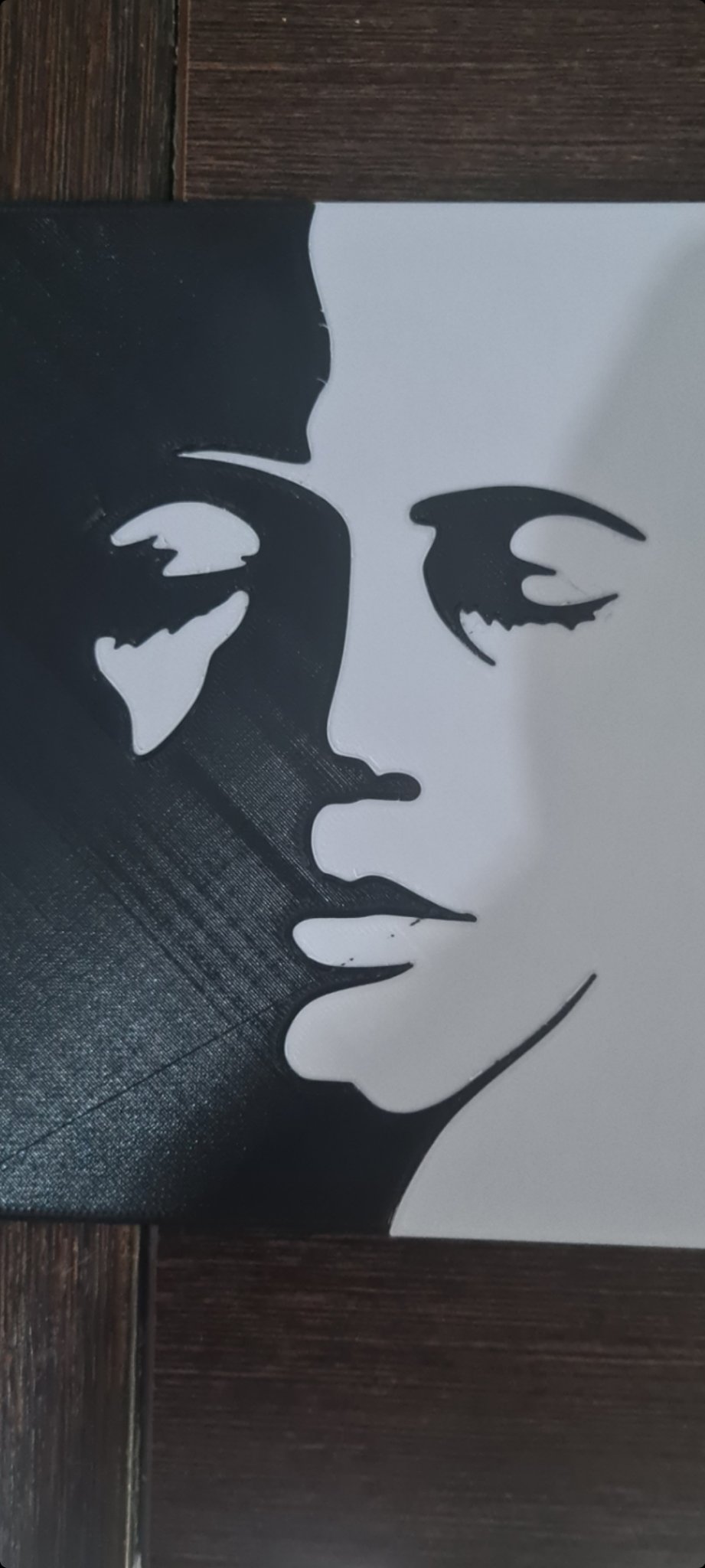 Sử dụng 100% infill, dùng Z-hop cho các bộ phận in và chiều cao Z-hop theo chiều cao lớp, in một phần trước, đổi màu rồi đặt phần còn lại vào slicer sao cho khớp và xóa phần đầu, sau khi hoàn thành thì in phần thứ hai, chiều cao lớp 0.2mm, nozzle 0.4mm, tốc độ khoảng 20mm/s, canh giường in cẩn thận và lau sạch kính, công đoạn này hơi mất công nhưng kết quả thì cực kỳ ấn tượng, sau đó dán hình ảnh vào một khung đẹp là xong, tạo ra một tác phẩm nghệ thuật trang trí.