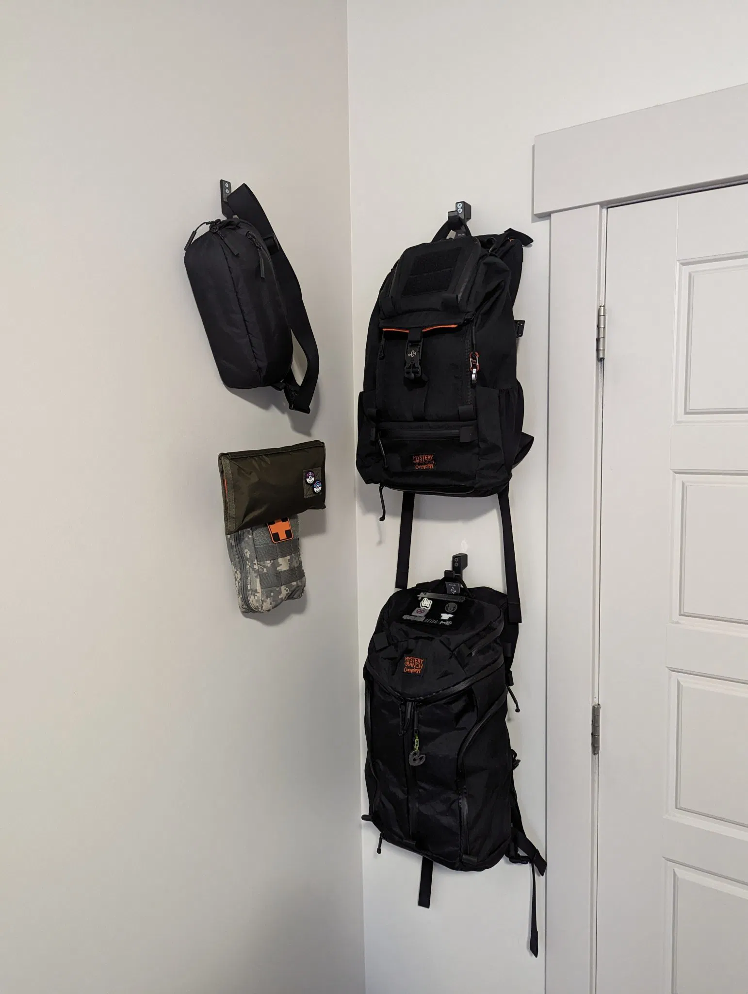 Có các cạnh cong để treo các vật dụng mỏng manh hoặc bằng vải có thể bị hư hại theo thời gian khi dựa vào các cạnh sắc. Cũng đã thêm vật liệu ở mặt tường để cho phép treo các vật dụng có phần cồng kềnh phía sau điểm treo - trong trường hợp của tôi là một chiếc ba lô có dây đeo bị vướng vào tay cầm.