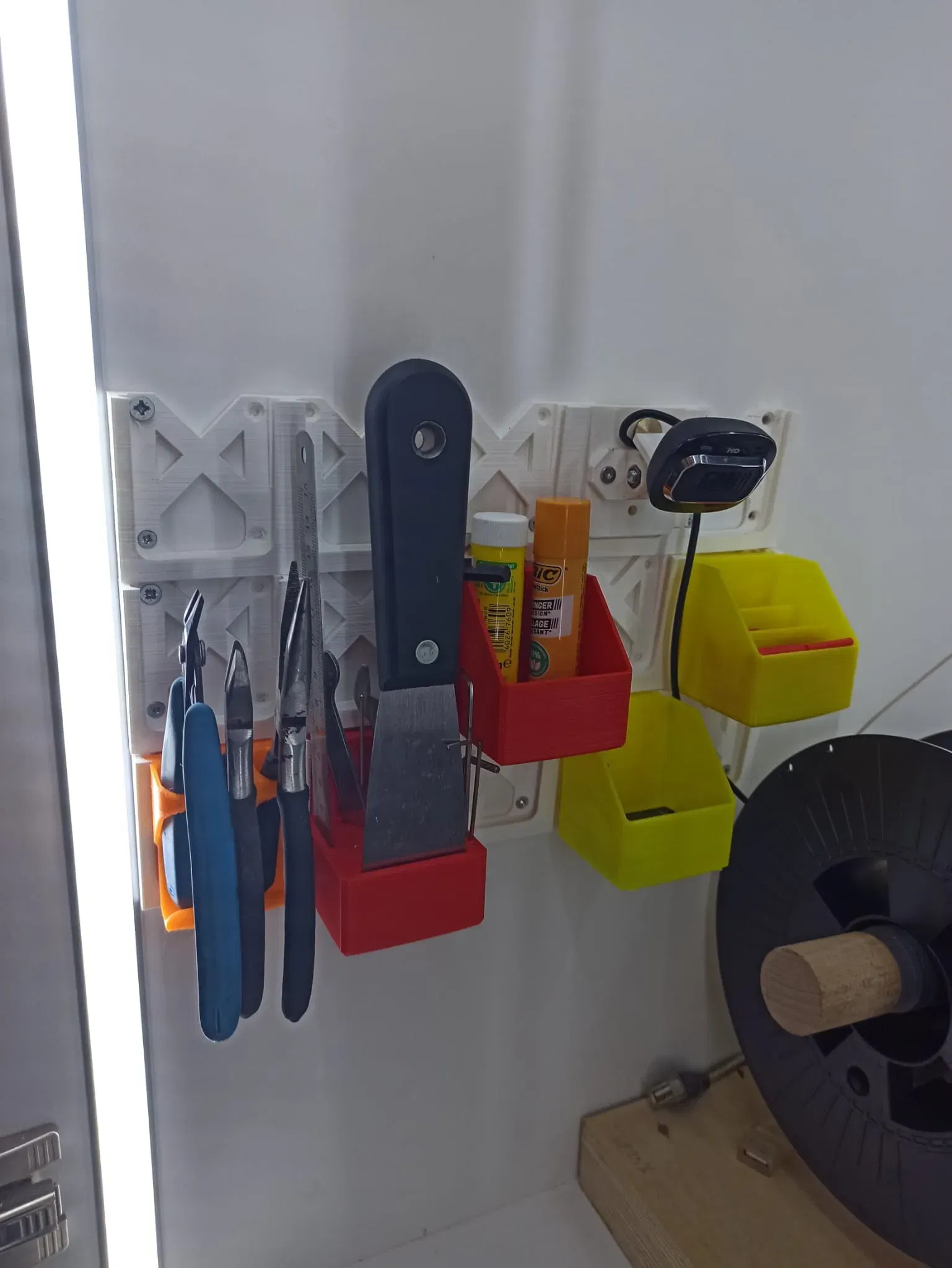 Một hệ thống lưu trữ treo tường khác, nhưng mà cứng cáp lắm nha. Thiết kế dạng module cho phép bạn tùy chỉnh cách sắp xếp cho phù hợp với nhu cầu của mình. Các bộ phận in không cần support, chỉ cần file STL hoặc STEP nếu muốn chỉnh sửa thêm. Hoàn hảo cho dân mê 3D printing.