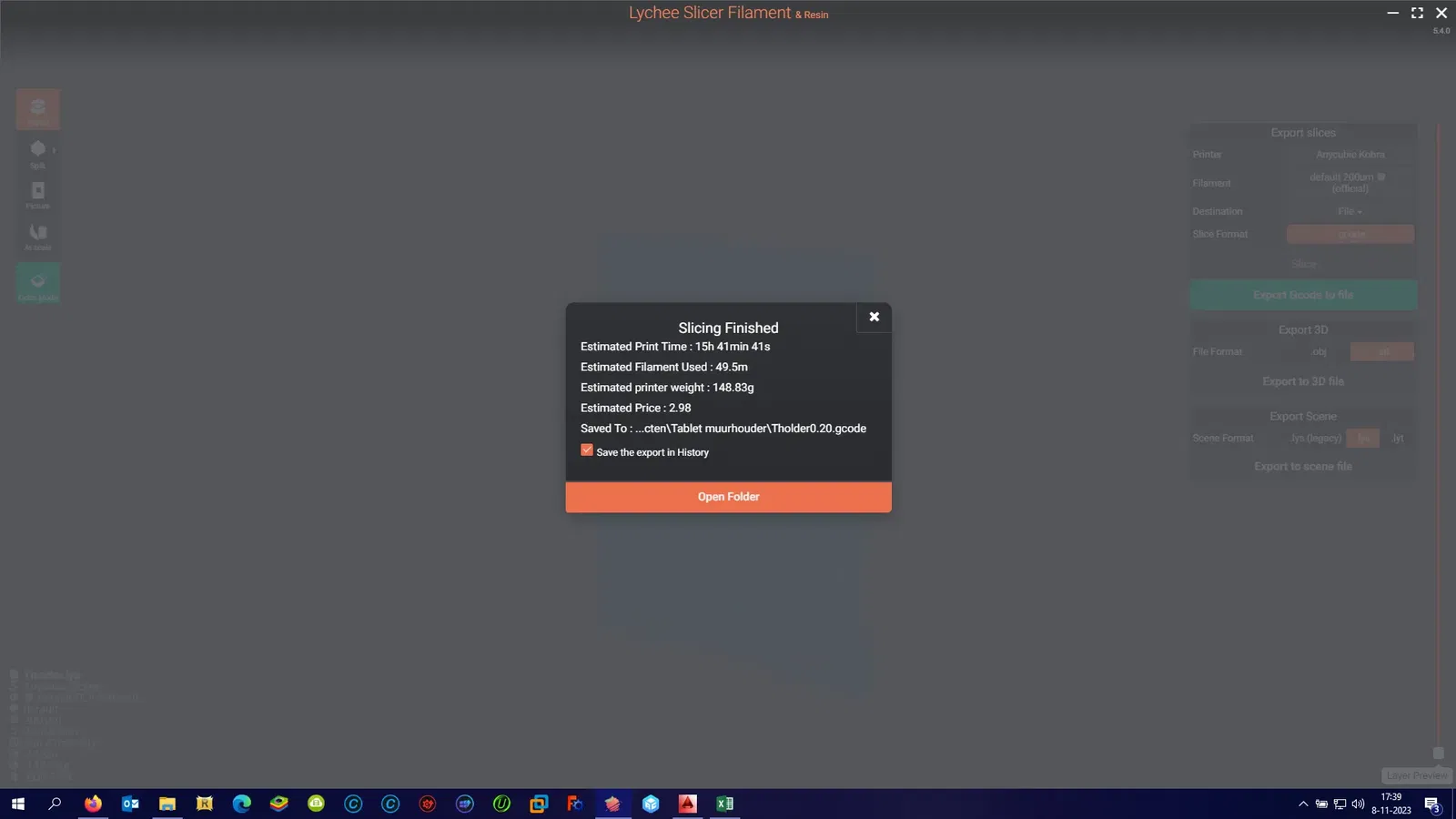 0.15 khoảng 18 tiếng ở tốc độ 75% 0.20 khoảng 15 tiếng ở tốc độ 75% nozzle 0.4 Cần support Gcode đi kèm
