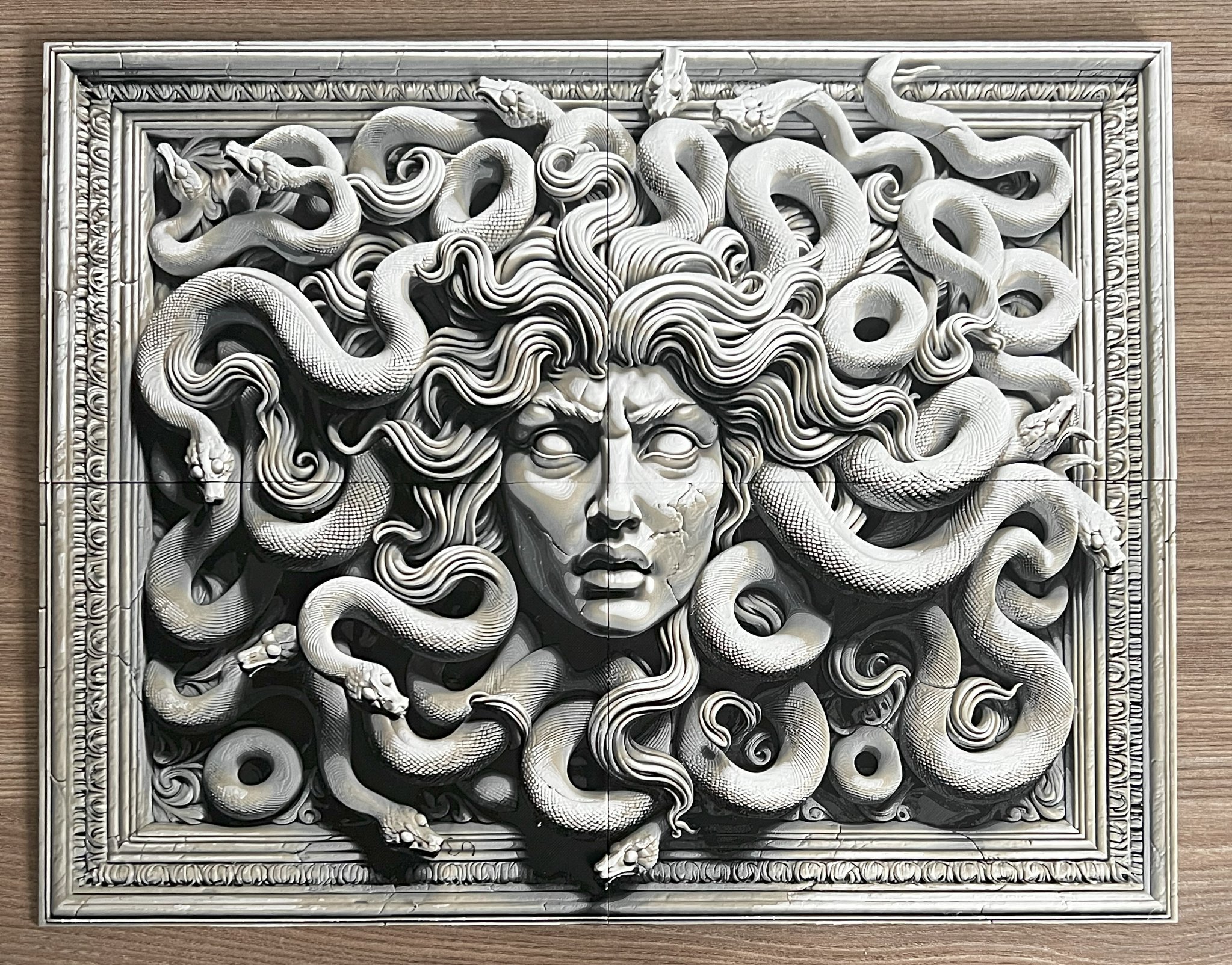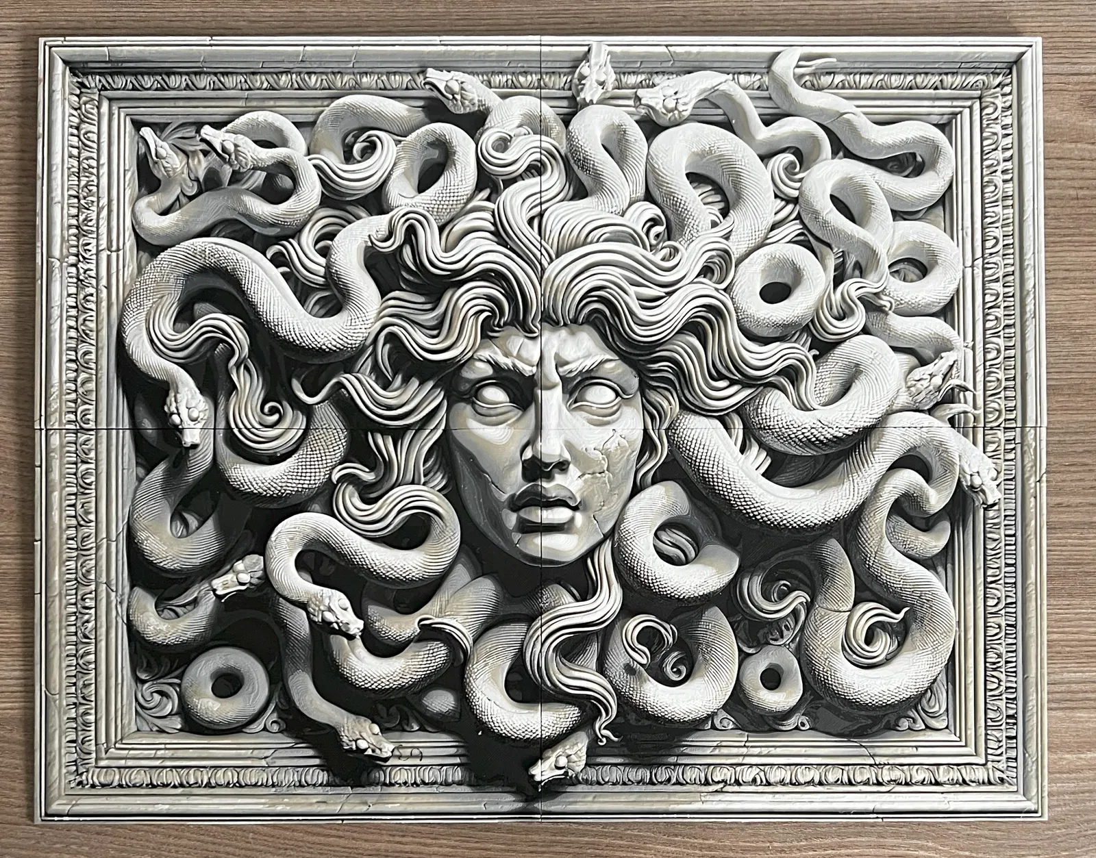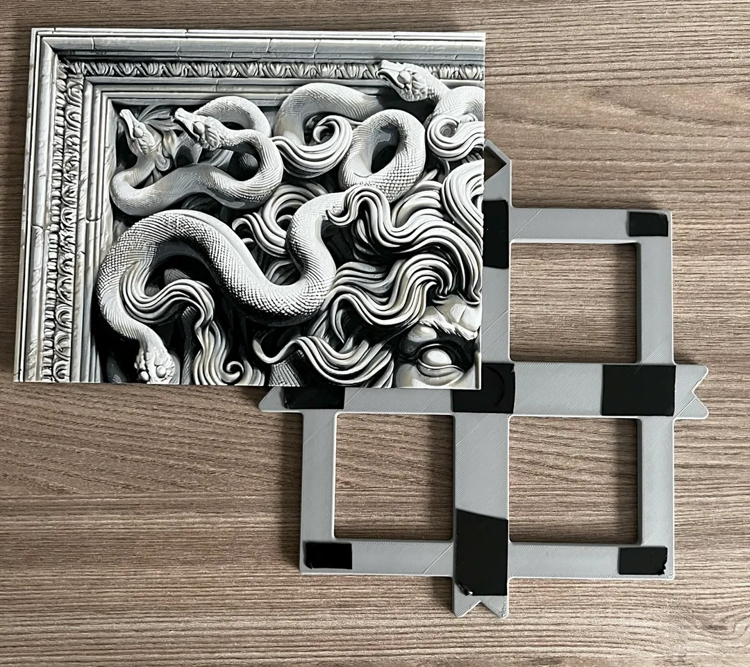So this is a helper model designed to help us mount on the wall a 2 or 4 parts filament painting. I tested the 2 parts for portrait and landscape and it works fine.