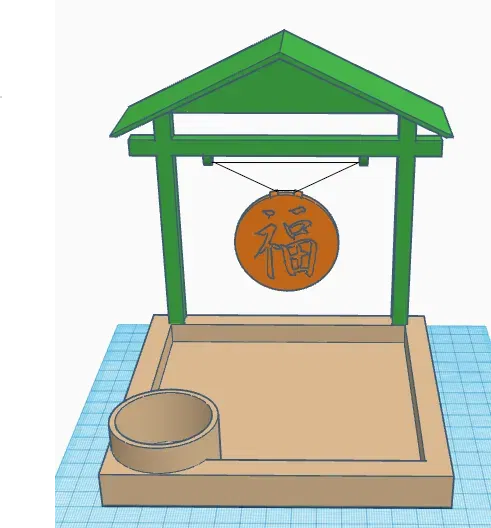 Khu vườn Zen 3D này bao gồm 3 bộ phận: sàn, mái và chuông, cho phép bạn trang trí bằng cát, đá hoặc các vật dụng khác. Có tùy chọn thêm đế nến hoặc không. Toàn bộ mô hình có thể in mà không cần vật liệu hỗ trợ.