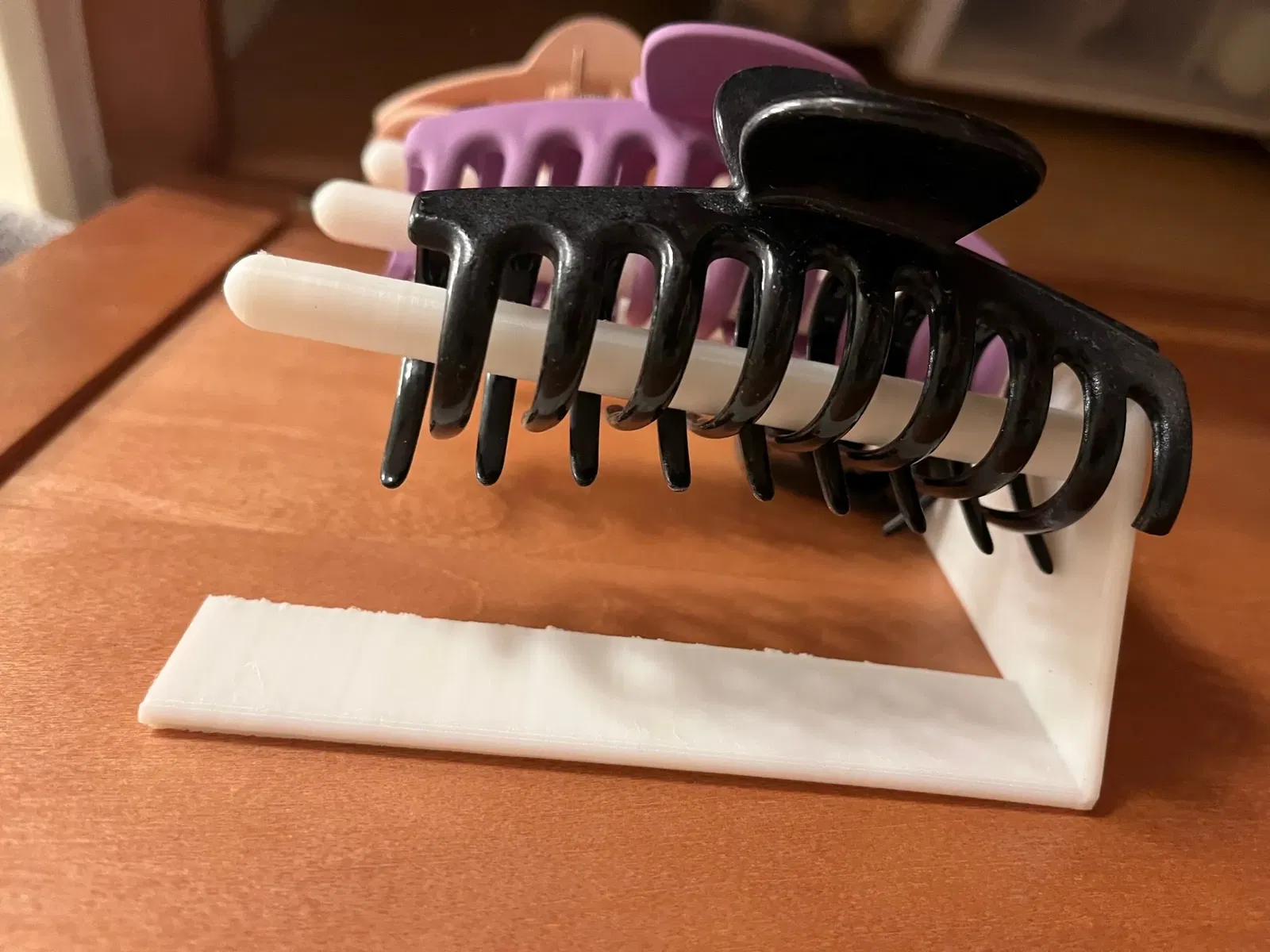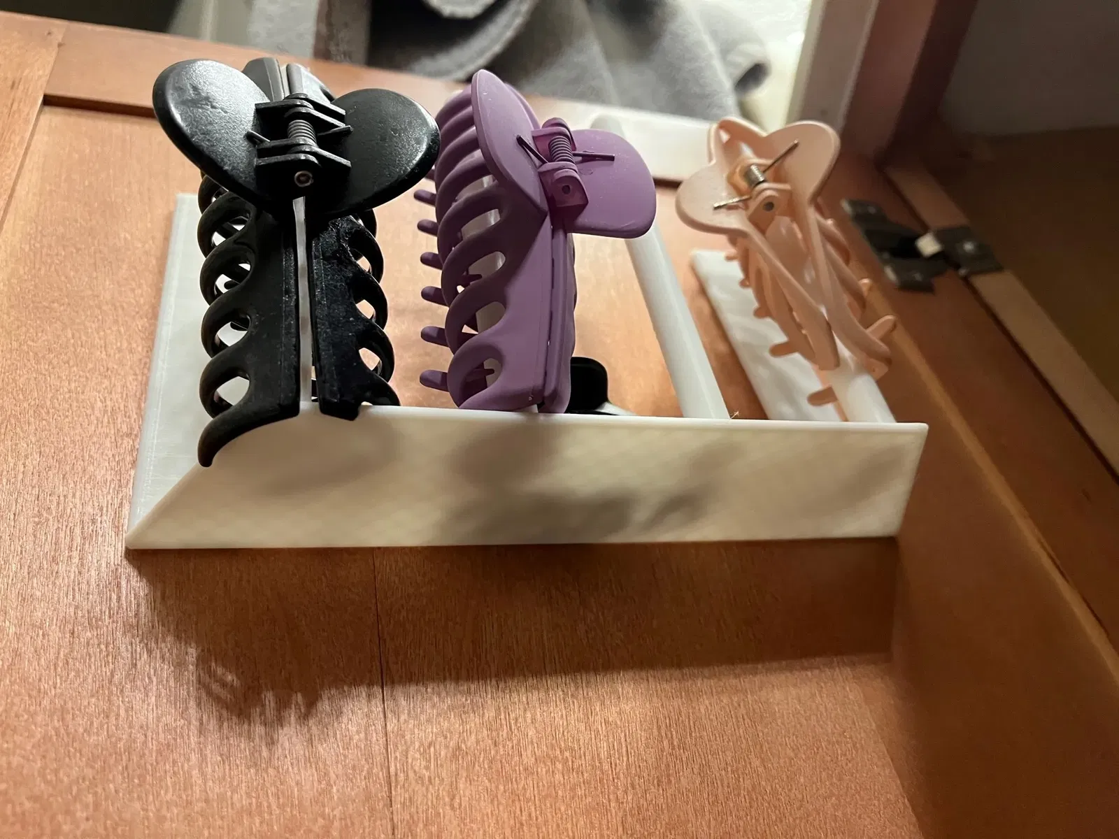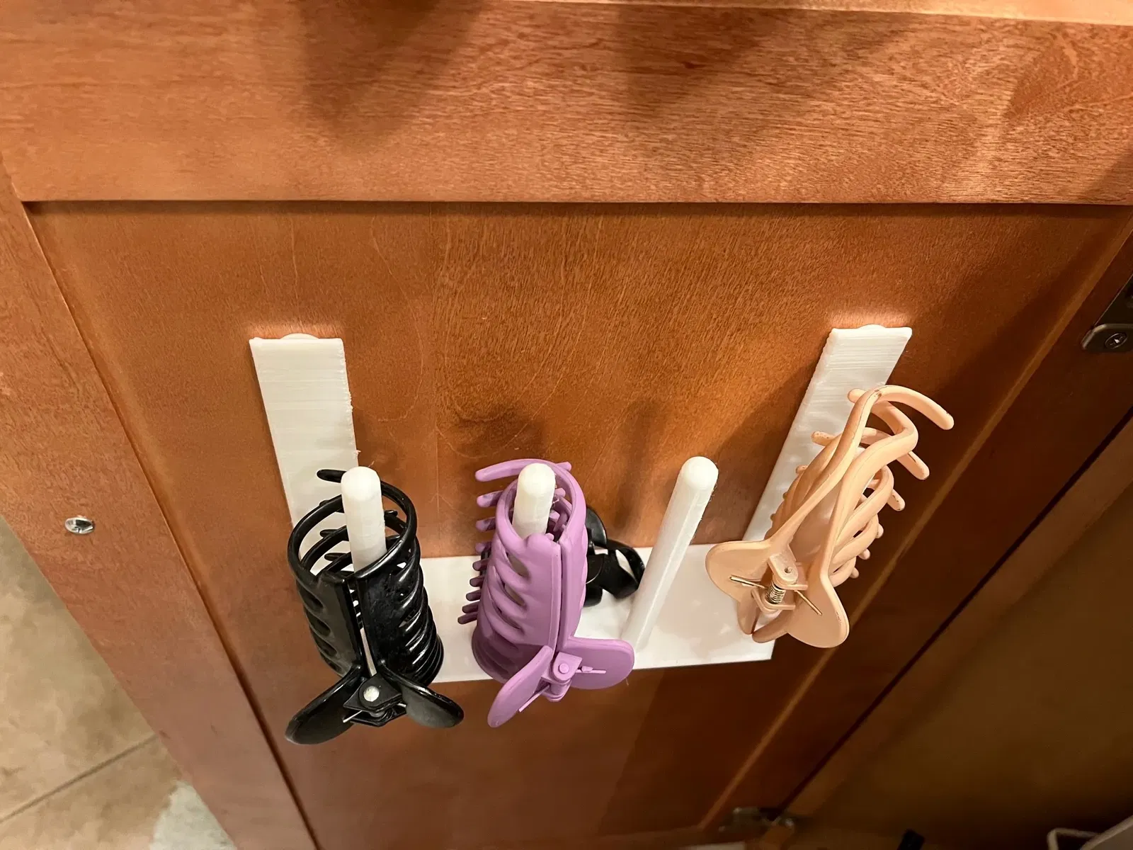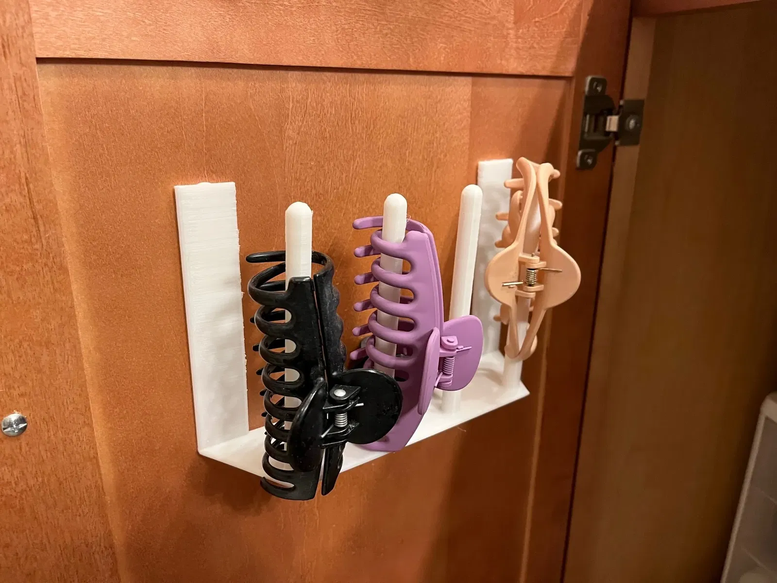 Giải pháp sắp xếp kẹp tóc đơn giản. Mẫu này có thể treo bên trong cửa tủ hoặc bắt vít vào bên hông tủ. Bạn có thể in phần tròn không cần infill và phần phẳng thì in đặc ruột để tăng độ bền.