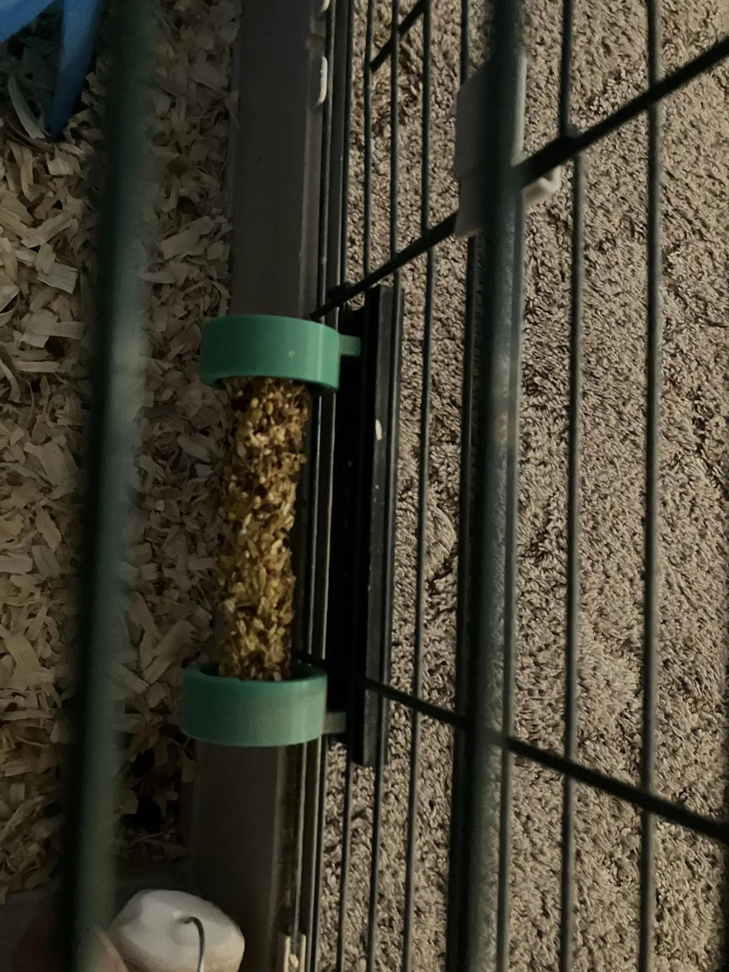 Nếu bạn nào hay cho mấy bé guinea pig ăn bánh thưởng dạng que của Vitakraft thì chắc cũng biết cái “giá đỡ” đi kèm làm cho que bánh bị treo dọc trong chuồng. Mình tin là bạn cũng biết là do cấu tạo đầu của mấy bé guinea pig cũng như các thú cưng nhỏ khác, nên việc chúng gặm que bánh theo chiều dọc hơi khó khăn. Thực ra thì nó giống như con người mà cố gắng ăn bắp ngô theo chiều dọc vậy đó. Trước đây, mình hay tháo cái kẹp nhựa ra rồi chỉ việc đặt que bánh vào trong chuồng để chúng gặm cho dễ. Cái này giúp nâng que bánh lên khỏi đáy chuồng và treo nghiêng sang một bên, nhưng lần này là theo chiều ngang.