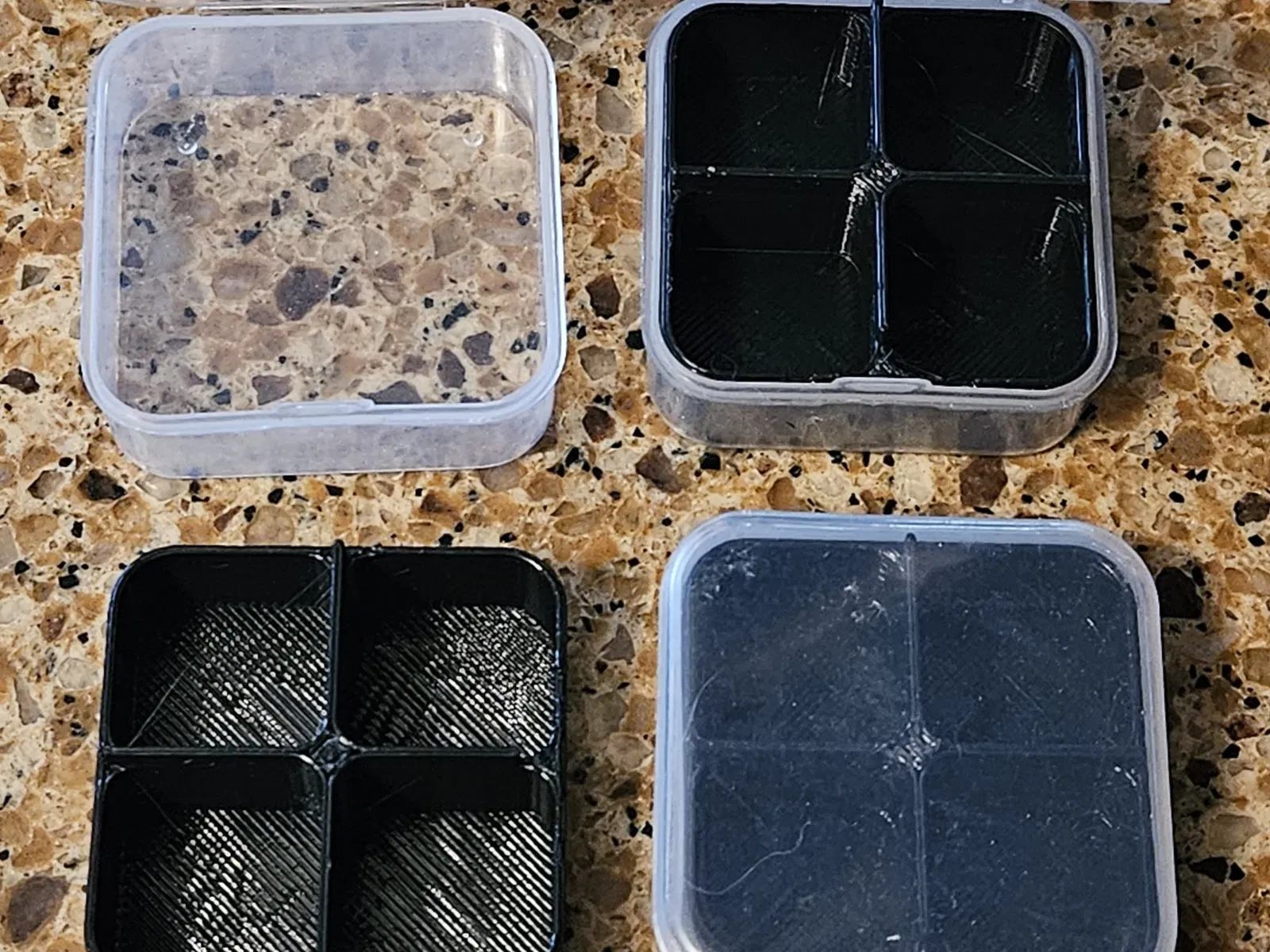 Như hình minh họa là LittleBoxDivider4 được in bằng ASA với 50% độ đầy và chiều cao lớp 0.35-mm. Không cần thiết phải có viền và hỗ trợ. Vật liệu, chiều cao lớp và tỷ lệ độ đầy đều có thể linh hoạt.