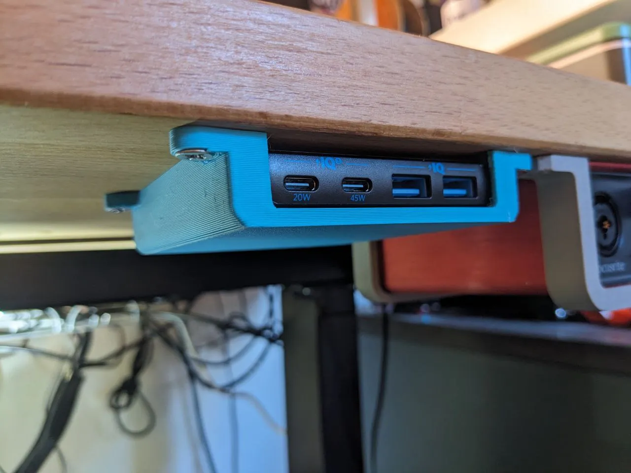Giá đỡ gắn dưới bàn cho củ sạc Anker PowerPort Atom III. Gắn vô cùng chắc chắn, rút sạc ra vô không sợ bị bung. In bằng đầu phun lớn, không cần lớp cao nhỏ.