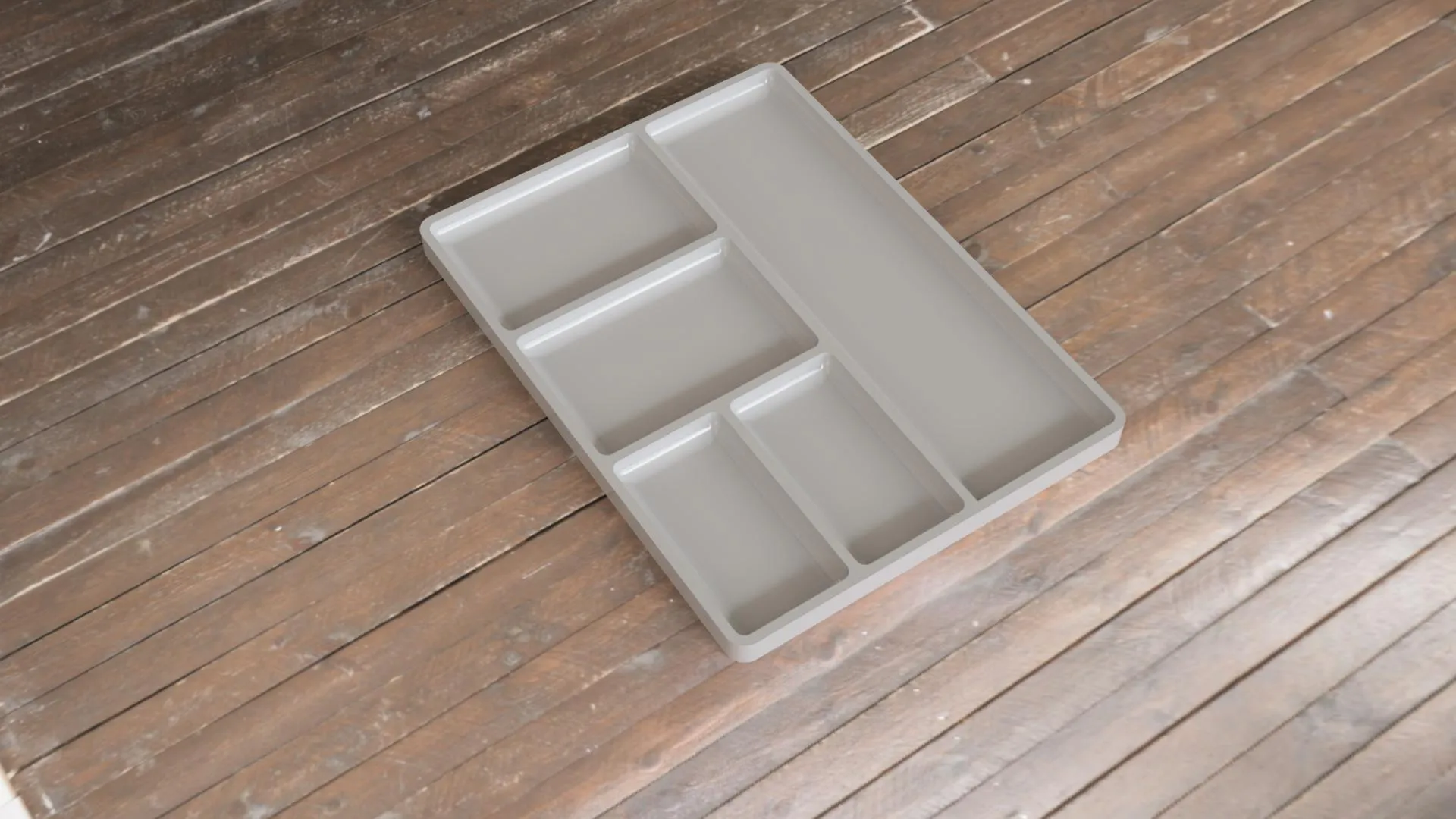 Khay đựng ốc vít nhỏ 120 x 90 mm, có nhiều ngăn để phân loại ốc vít theo kích cỡ. Các góc bo tròn giúp in nhanh. Cài đặt lớp đáy 1.5mm, thành dày 2mm. Có 1 ngăn lớn, 2 ngăn vừa và 2 ngăn nhỏ.