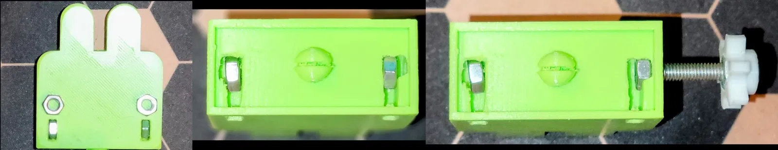 Đai ốc tay bao gồm một đai ốc M4, một bánh răng in, và một đai ốc M4. Ngoài ra, bạn có thể sử dụng đai ốc tay M4 miễn là chúng đủ dài để đạt chiều dài tối thiểu.