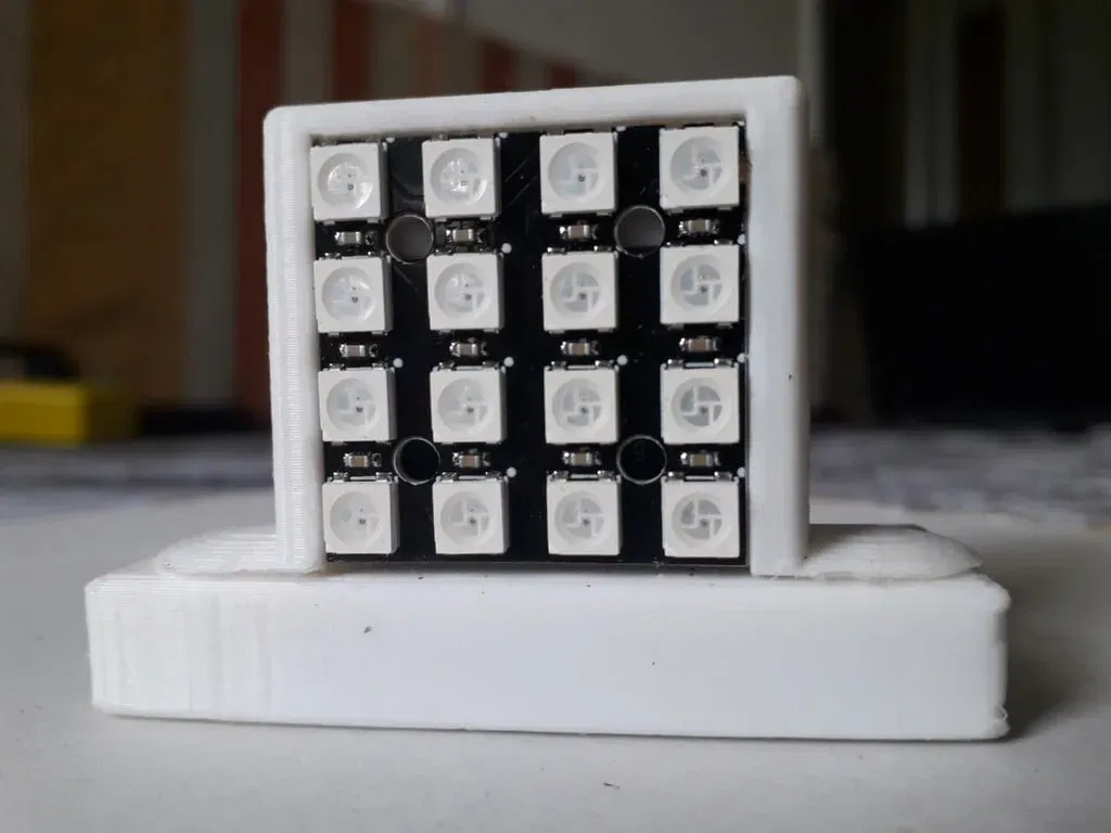 Đồng hồ trong kích thước hộp trận đấu với đồng hồ nhị phân điều khiển cảm ứng, nó có 16 mảnh hiển thị ma trận WS2812B hiển thị được mã hóa nhị phân