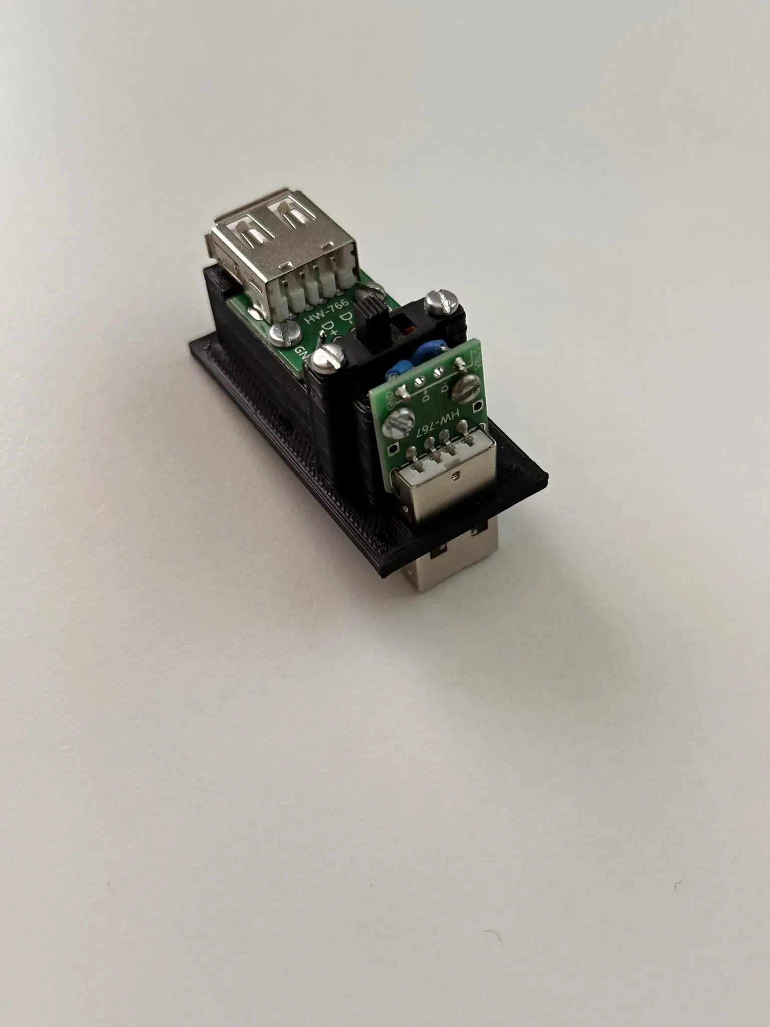 I have a dashcam in my car and wanted to disconnect it from the power supply when the car is parked for a longer period of time. I didn't want to keep plugging it in and out, so I designed a 90° USB adapter with an on/off switch. Of course you can also use this adapter for other purposes.