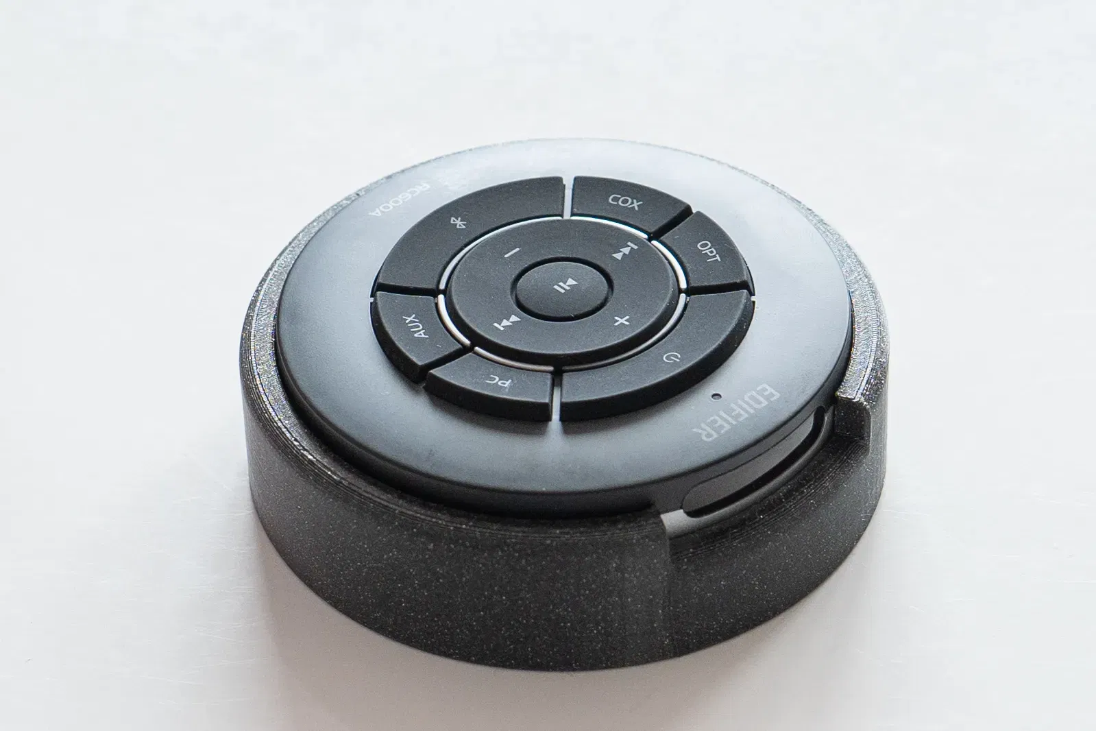 Kệ để bàn giúp giữ remote loa Edifier S360DB vững chắc, chống chông chênh khi bấm nút. Có rãnh cho mắt hồng ngoại và lúm giữ nắp pin chống xoay.