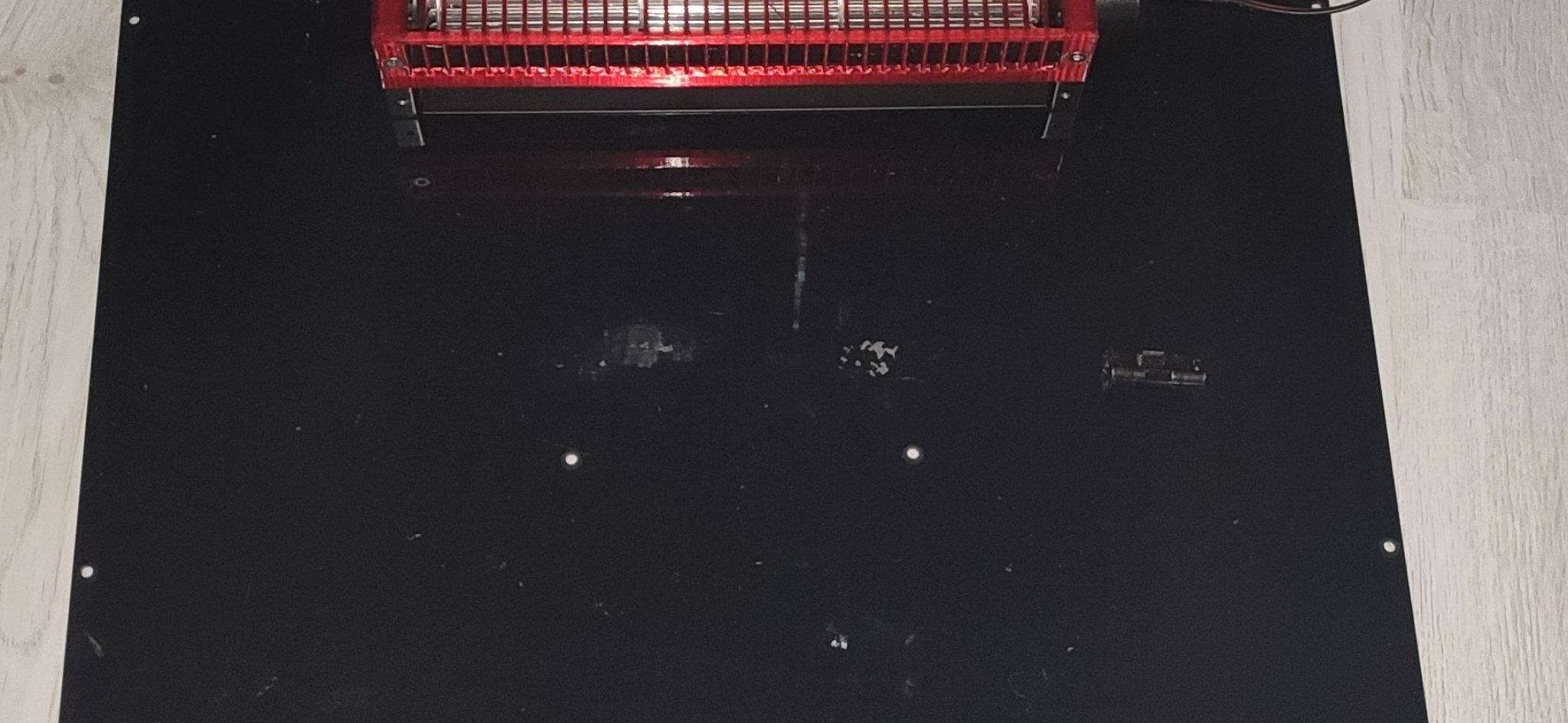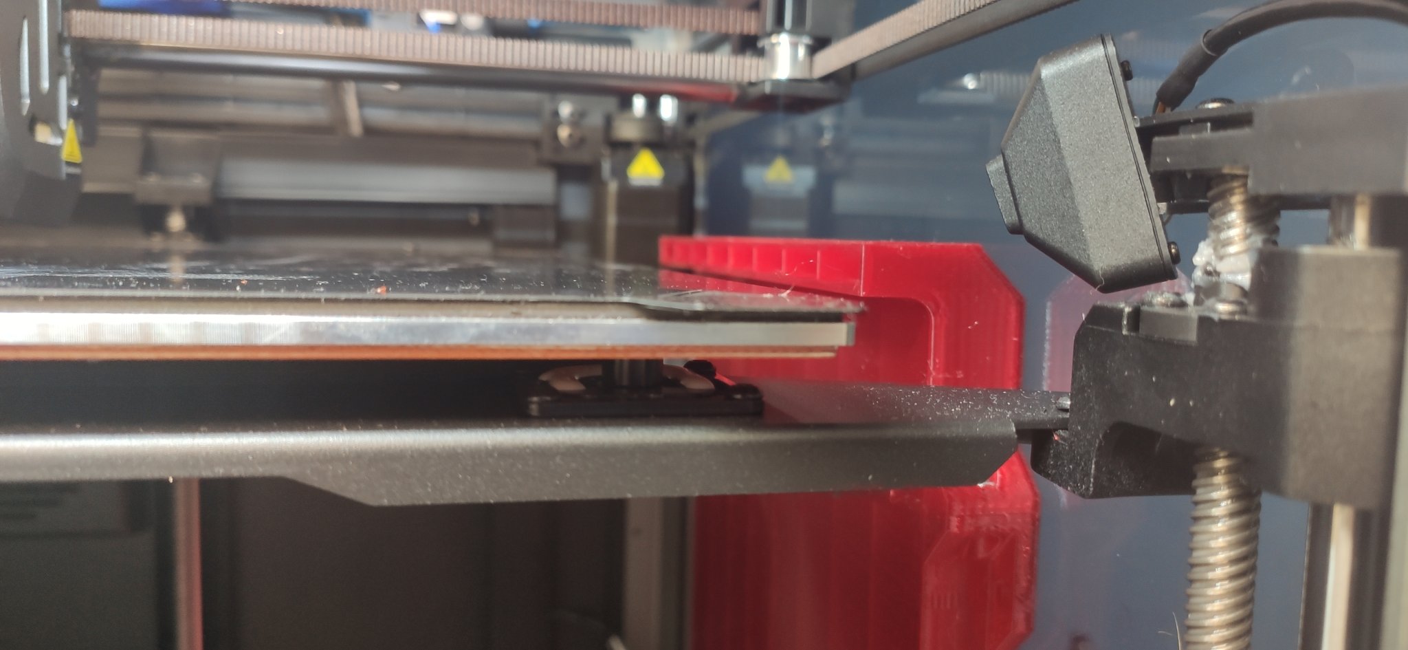 Hạ bàn in xuống vị trí thấp nhất, sau đó đặt quạt áp sát vào thành hông bên phải, chú ý để lại một khoảng trống nhỏ với giá đỡ bàn in (3 đến 4 mm), rồi đánh dấu và khoan lỗ cố định trên tấm hông.