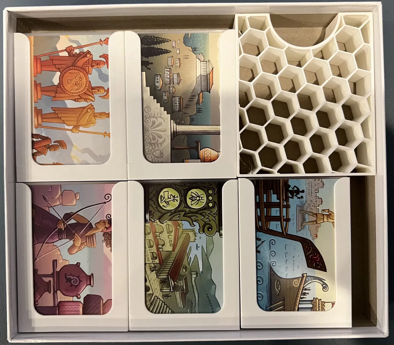 Một khay đựng sẽ giữ các thẻ bài có bao cho trò chơi Aegean Sea của Carl Chudyk từ Asmadi Games. Khay đi kèm với trò chơi rất tuyệt, nhưng nó không vừa với các thẻ bài có bao Paladin Percival.