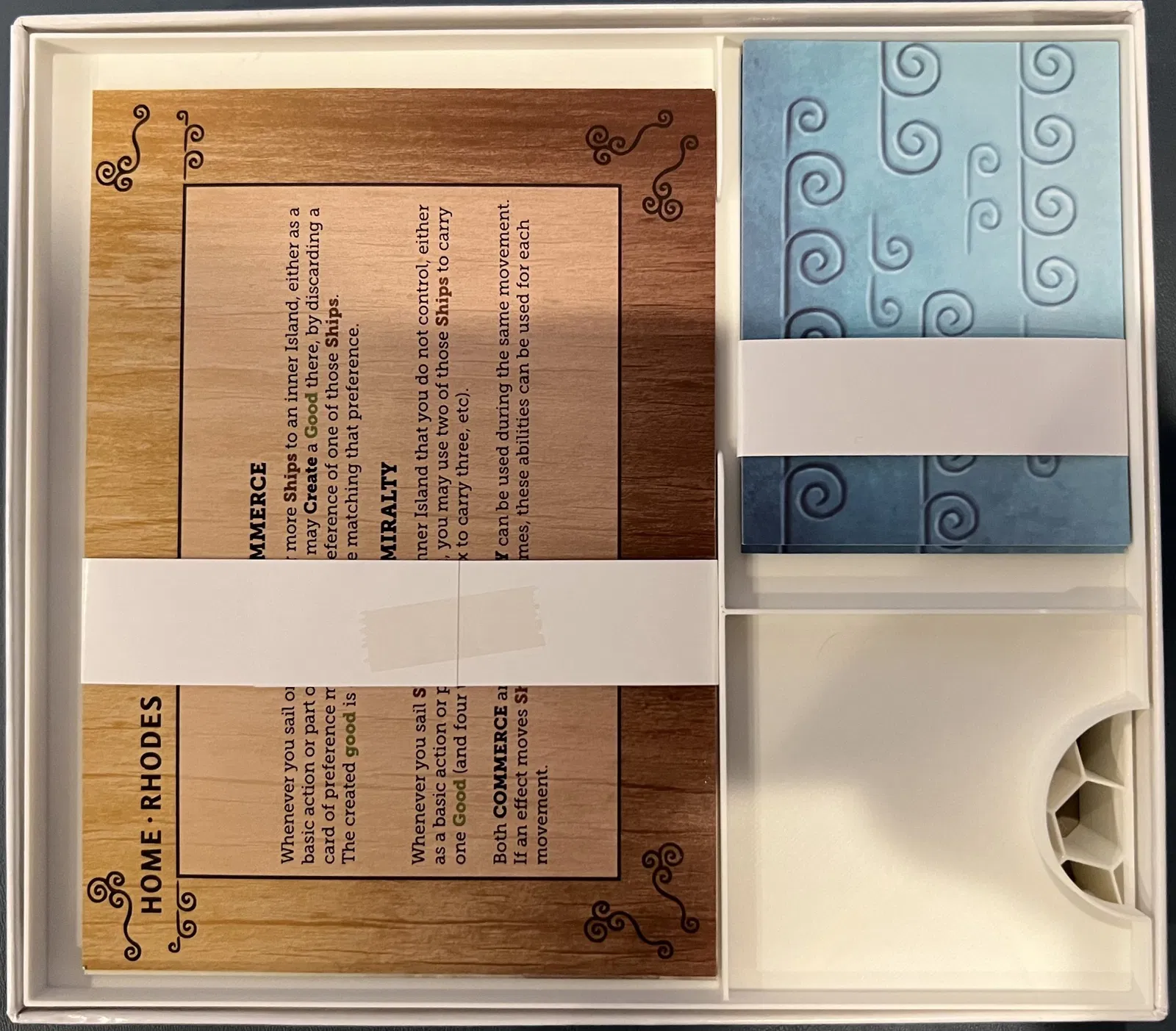 Một phần chèn sẽ chứa các thẻ tay áo cho trò chơi Aegean Sea của Carl Chudyk từ các trò chơi Asmadi.