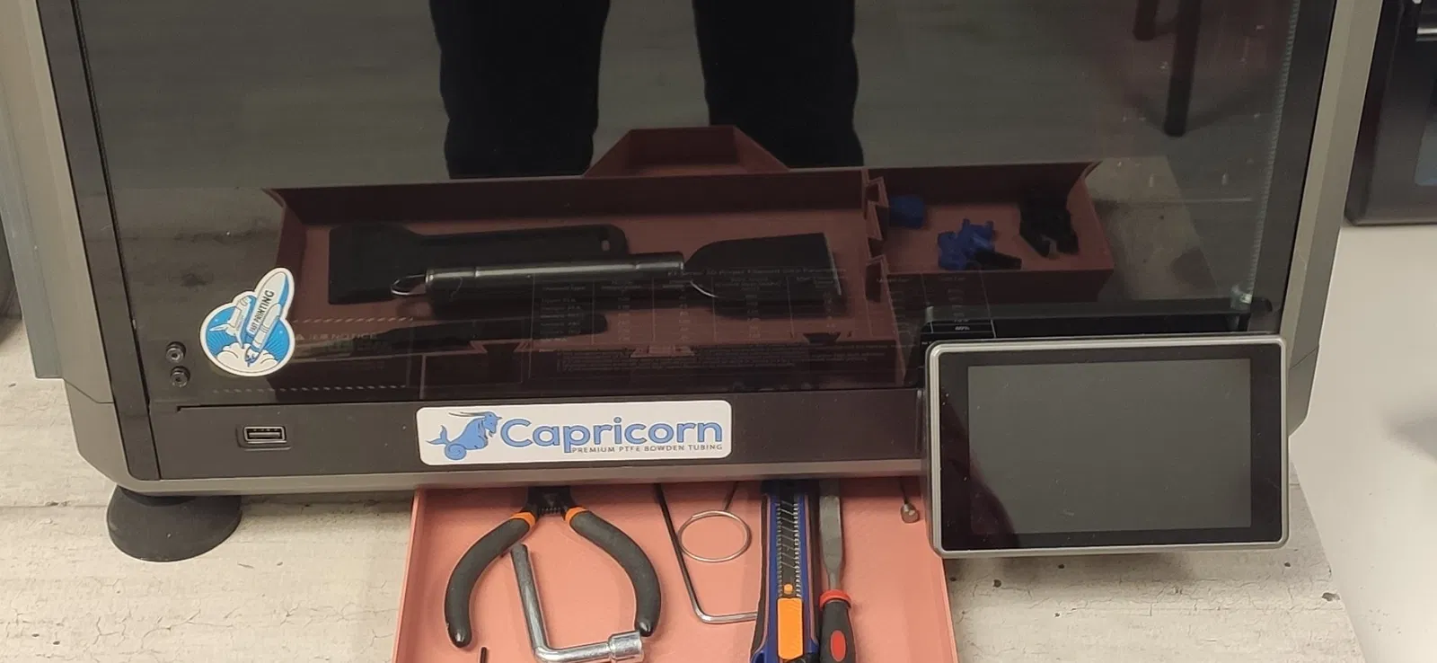Ngăn kéo dưới cho K1 Max, được thiết kế ôm sát chân cao su của máy in. Các khe thông gió của bo mạch chủ và nguồn được giữ trống để đảm bảo máy hoạt động tốt. Các bộ phận gài vào nhau dễ dàng với độ chính xác 0.2mm.