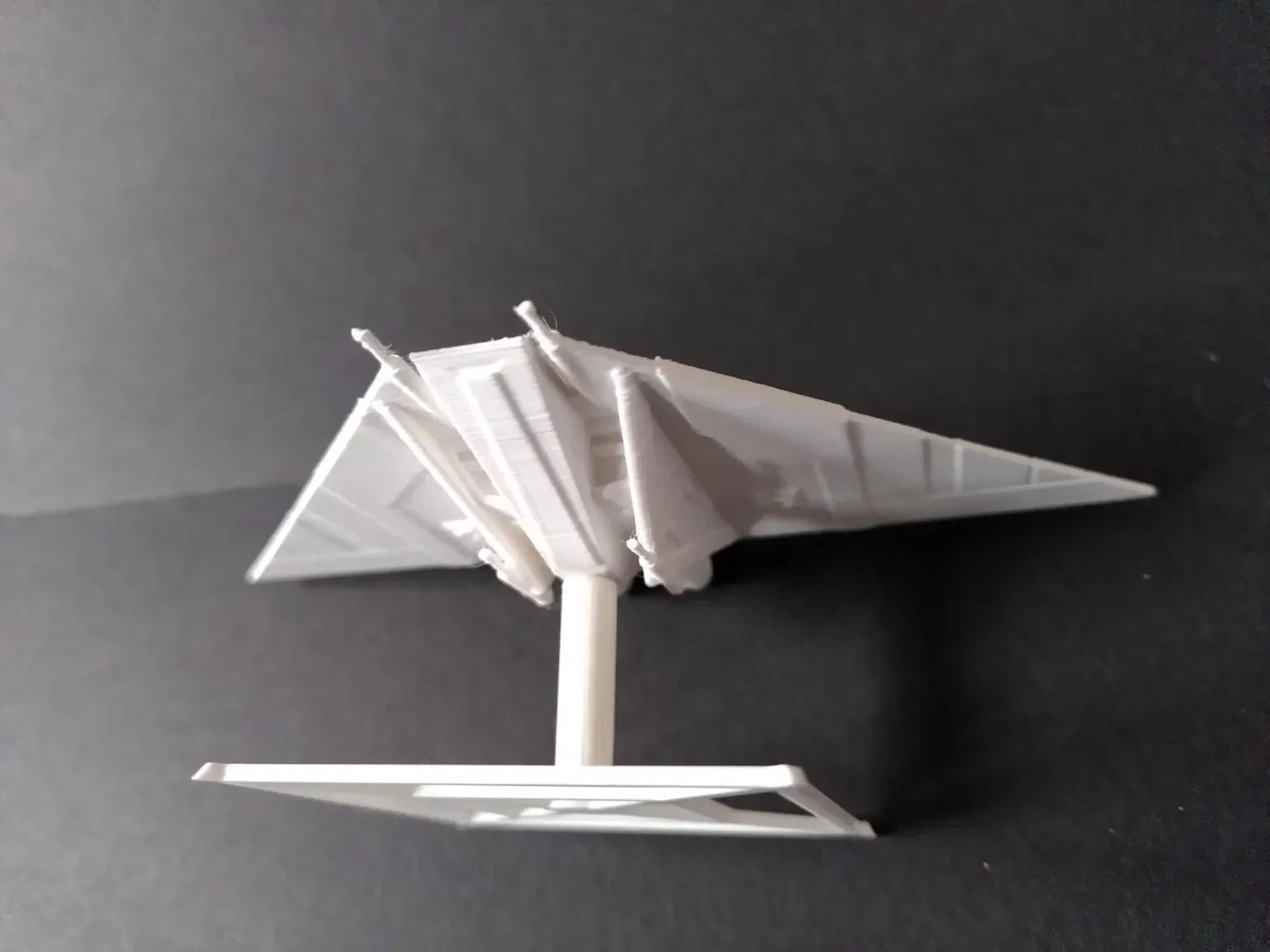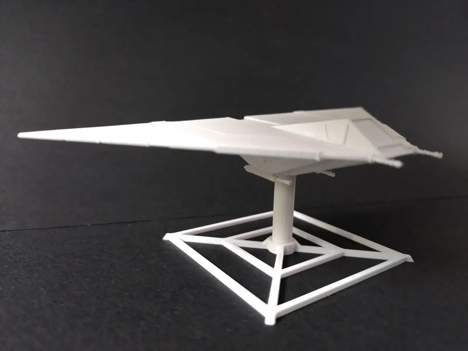 Kích thước của mô hình này khoảng 1:270. Tui không tìm được nhiều thông tin về kích thước chuẩn của nó, nên tui đã phóng theo tỉ lệ tương đương với tàu Lambda-Shuttle. Mô hình có chiều rộng 135.1mm, chiều dài 70.5mm và chiều cao 20.5mm. Nó có một lỗ ở dưới đế để gắn với chân đế và đế lớn.