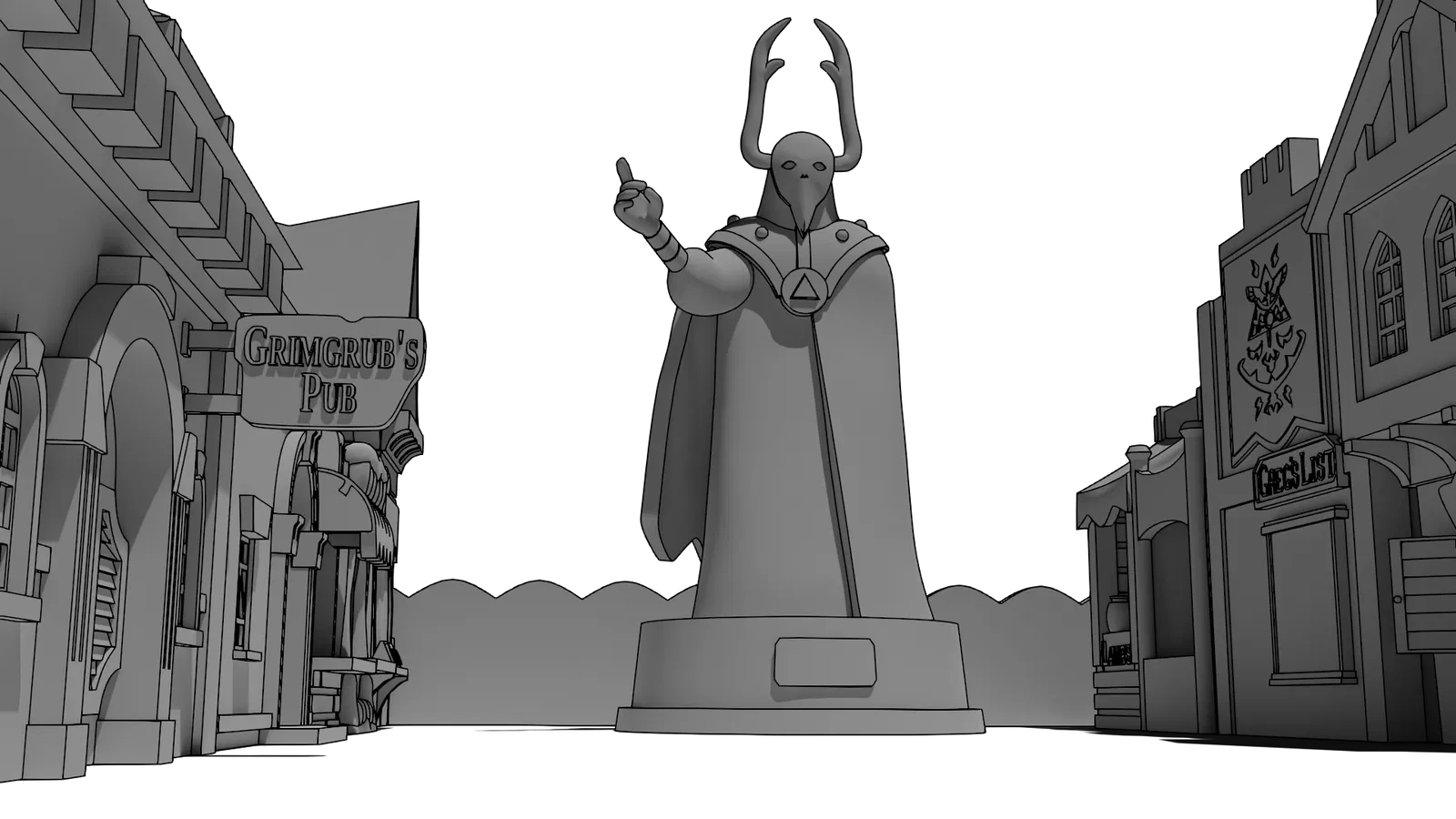 Đây là mô hình (một phần) khu chợ ở Bonesborough trong phim The Owl House, bao gồm sáu quầy hàng khác nhau, Mr Elixir, quán rượu Grimgrub's Pub và Tượng Belos.