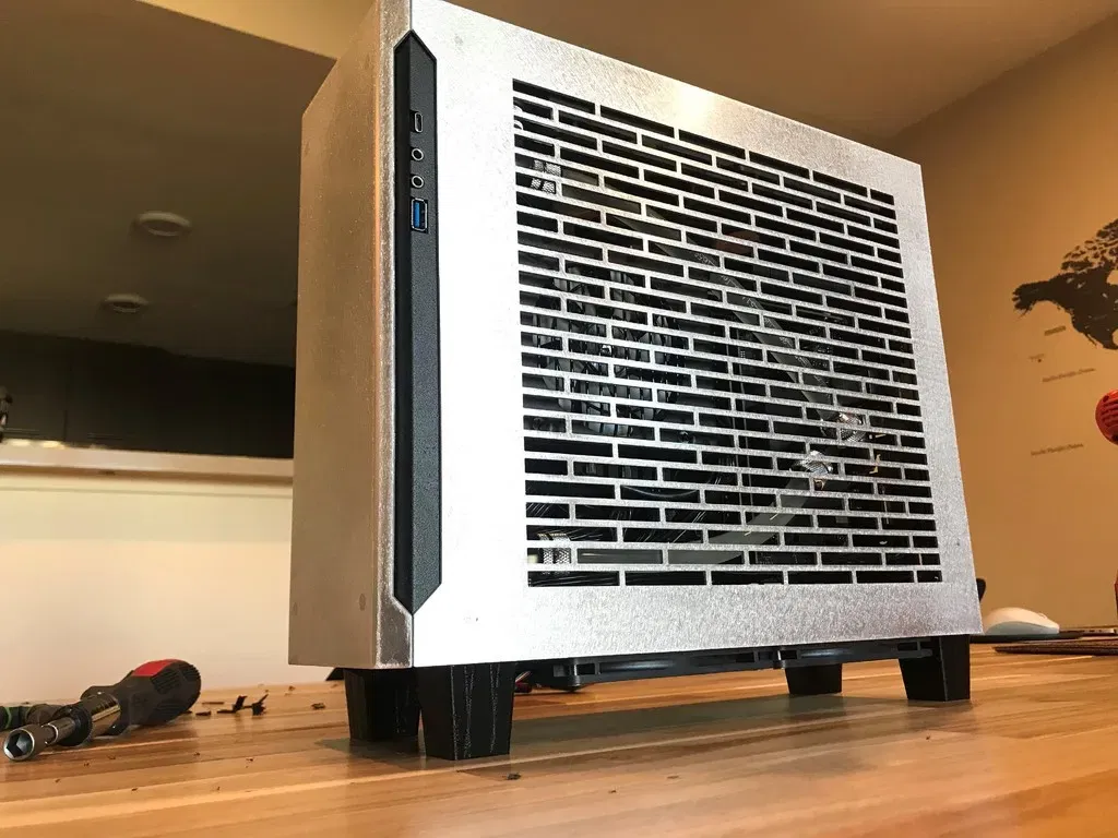Đây là những cái chân mình thiết kế cho con Sliger SM570 của mình, cho phép mình gắn quạt case 120mmx25mm phía dưới thùng máy. Chúng cho phép tận dụng ốc vít zin; có thể dễ dàng tháo vòng khoá bằng kim loại trên chân cao su zin.