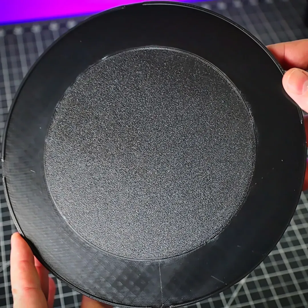 Mọi người ơi, lưu ý là cái này là bản thử nghiệm trước Kickstarter nha, nên kích thước của cái bàn xoay này có thể sẽ thay đổi khi bản chính thức ra mắt đó. Tuy nhiên, đây là bộ gồm 2 phần, mọi người có thể cân nhắc dán keo lại luôn cho chắc. Không cần dùng support đâu, nhưng mà có thể mọi người sẽ cần xoay ngược cái mô hình trong phần mềm lại một chút á, tại tui xuất file hơi lạ.