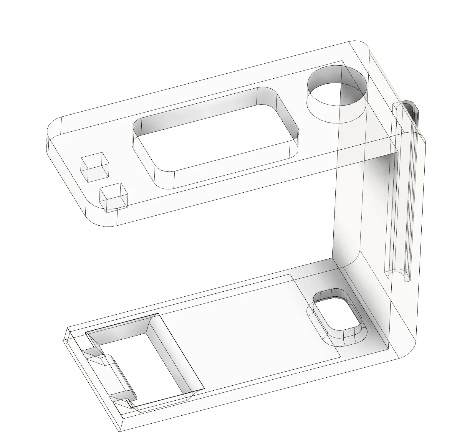 Made with PLA and support enforcers at the cable retainer on the side and square nubs that interface with the square hole on the camera top.