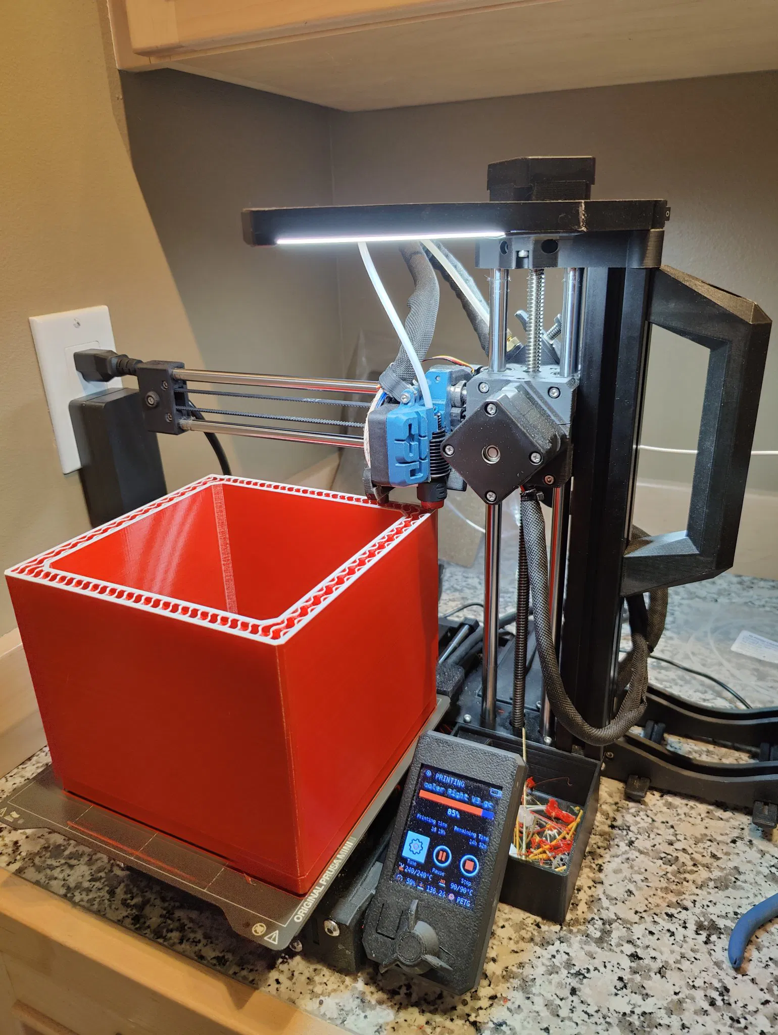 Tủ lạnh mini có thể in trên Prusa Mini và hoạt động tốt cho tối đa 4 lon 12oz dựng đứng hoặc nằm ngang. Cũng hoạt động tốt cho đồ ăn nhẹ hoặc làm hộp đựng đồ nói chung. Khuyến nghị Bu-lông M6 Đầu Bằng 1" và không siết quá chặt để nắp có thể di chuyển theo độ căng bạn đặt.