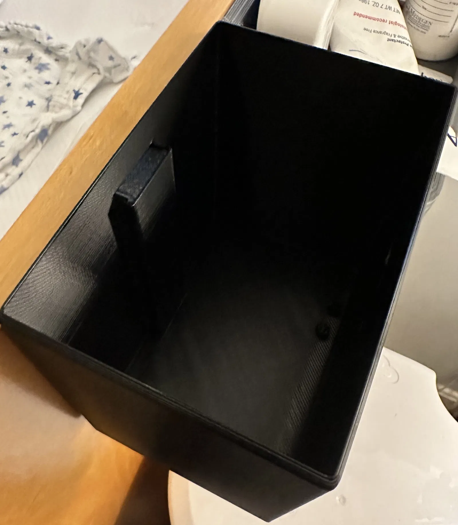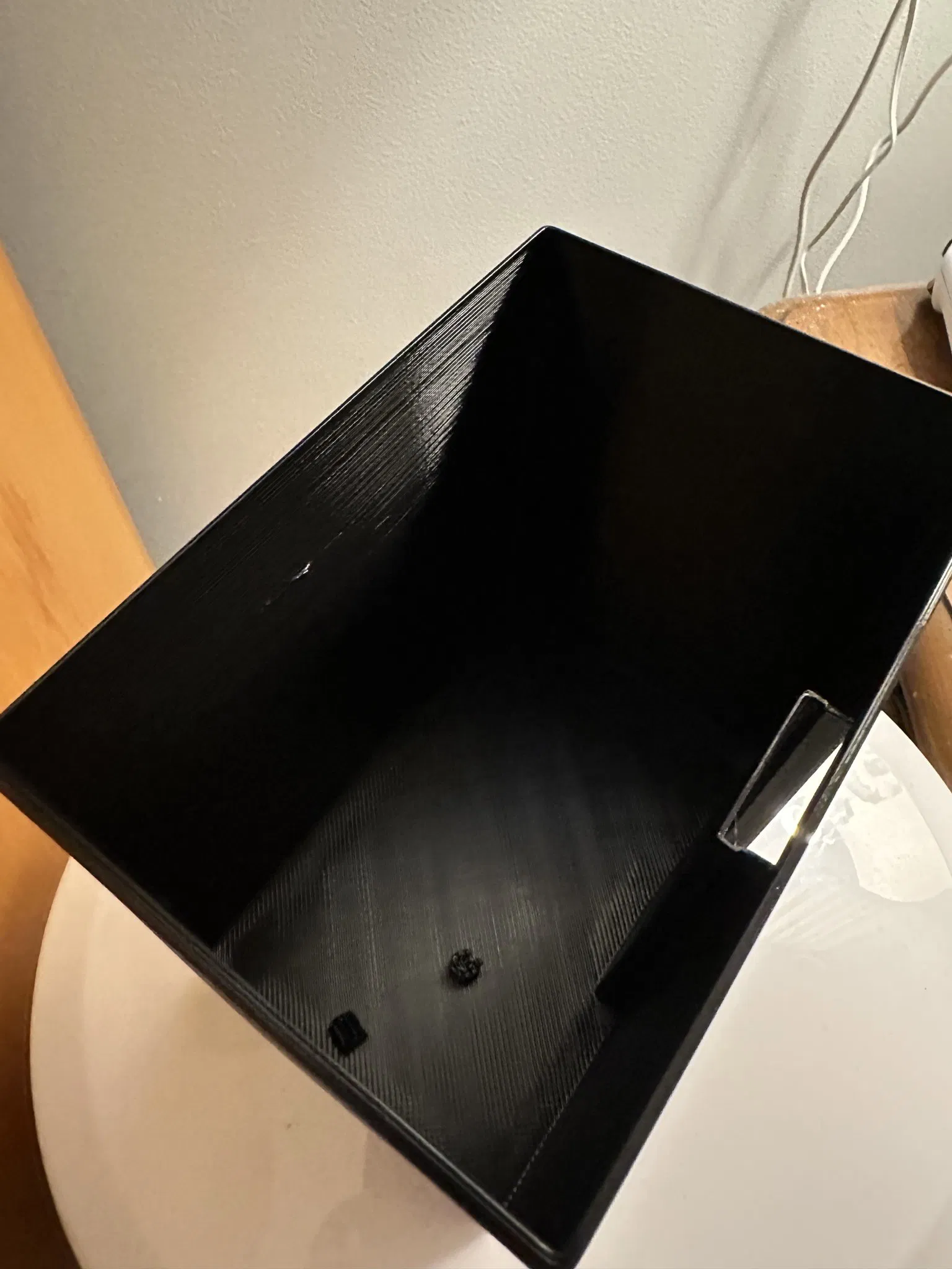 Tôi đã in cái của mình như trong hình với vòi phun 0.8mm. Lon tự nó được in với chiều cao lớp 0.55mm trong khoảng 2 giờ. Giá đỡ được in với chiều cao lớp 0.3mm trong khoảng 40 phút.