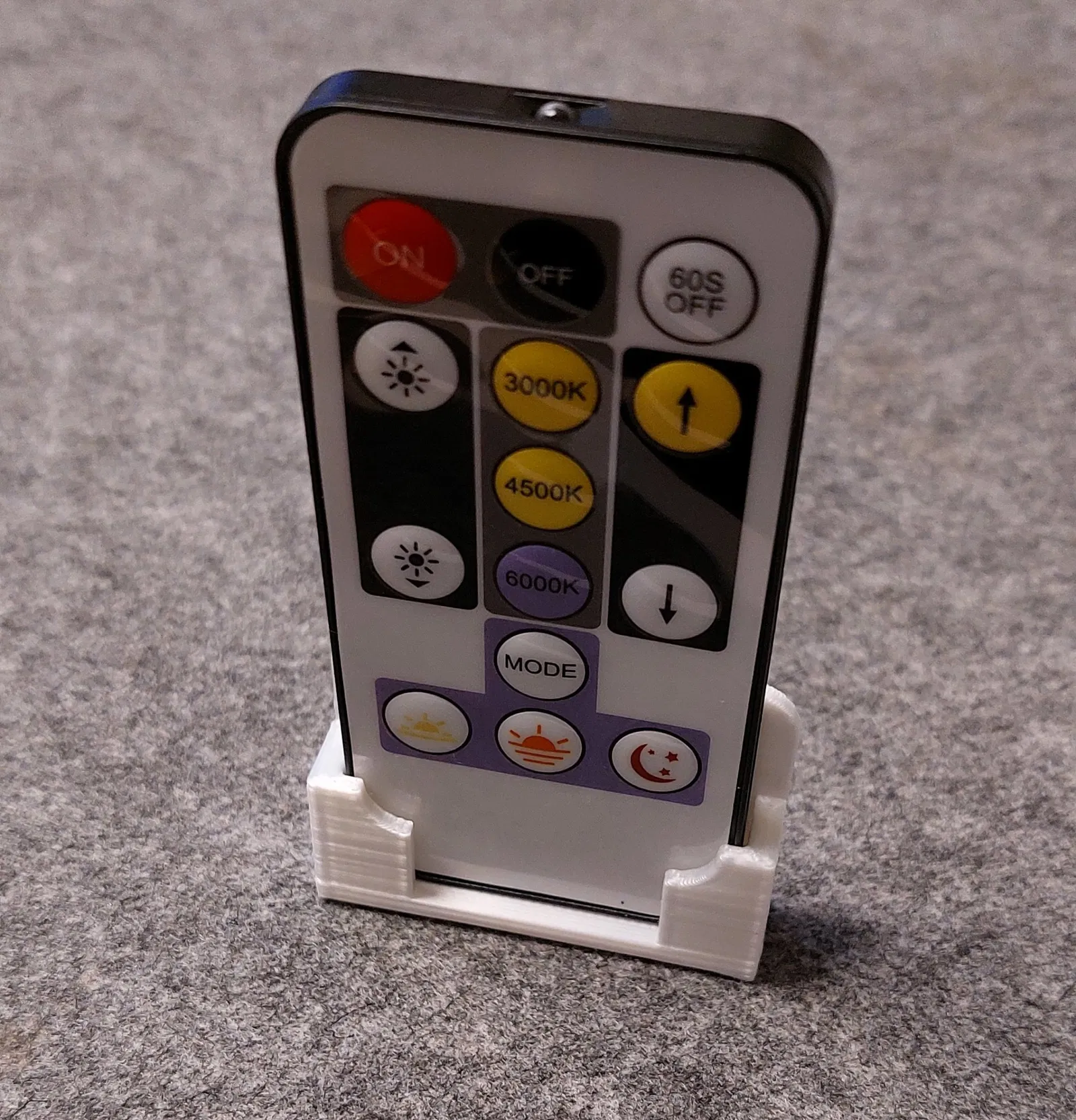 Tui tạo cái đế giữ remote điều khiển đèn LED dây đơn giản, có lỗ bắt ốc. Cái này in hơi lỏng tí nhưng remote không rơi ra dễ đâu. Dùng ốc cẩn thận với PLA lụa nha.