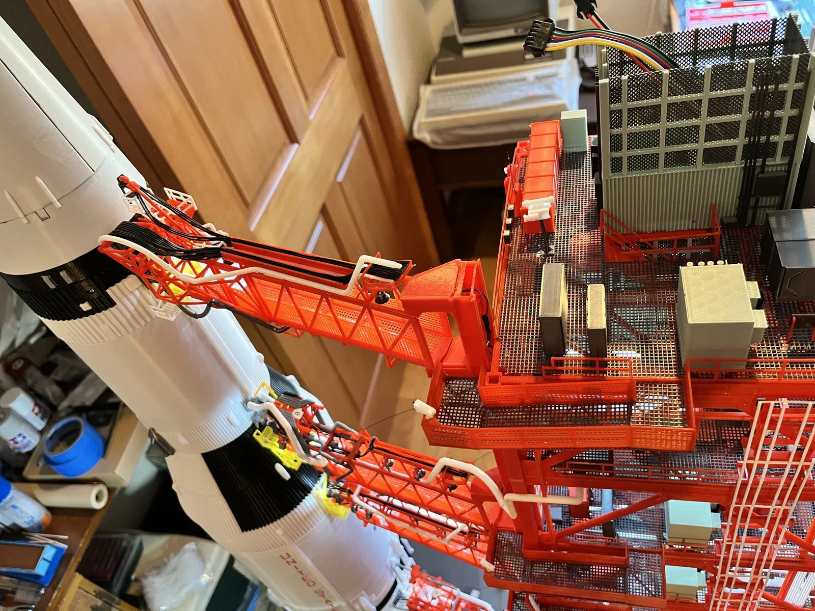 Đây là cánh tay gạt số 7 gắn vòi của Tháp Dây Rốn Apollo vào tên lửa Saturn V. Một phần của mô hình Tháp Dây Rốn Apollo lớn hơn, lưu ý các bộ phận có thể giống nhau giữa các tầng.