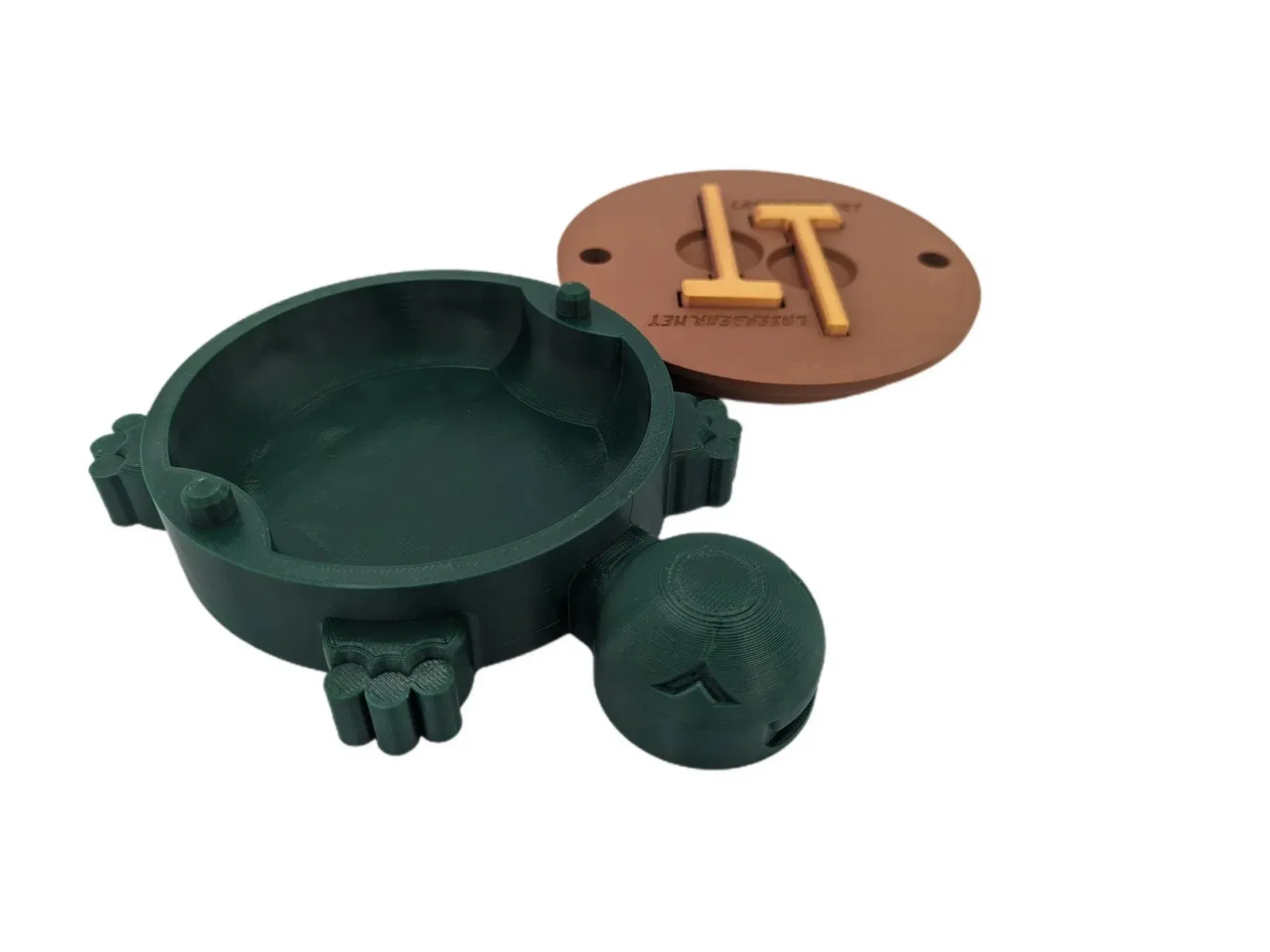 Based on the classic Little Tikes turtle sandbox. Nostalgic and calming desktop Zen garden with two rakes. Convenient storage slots for the rakes. Sand obviously not included.