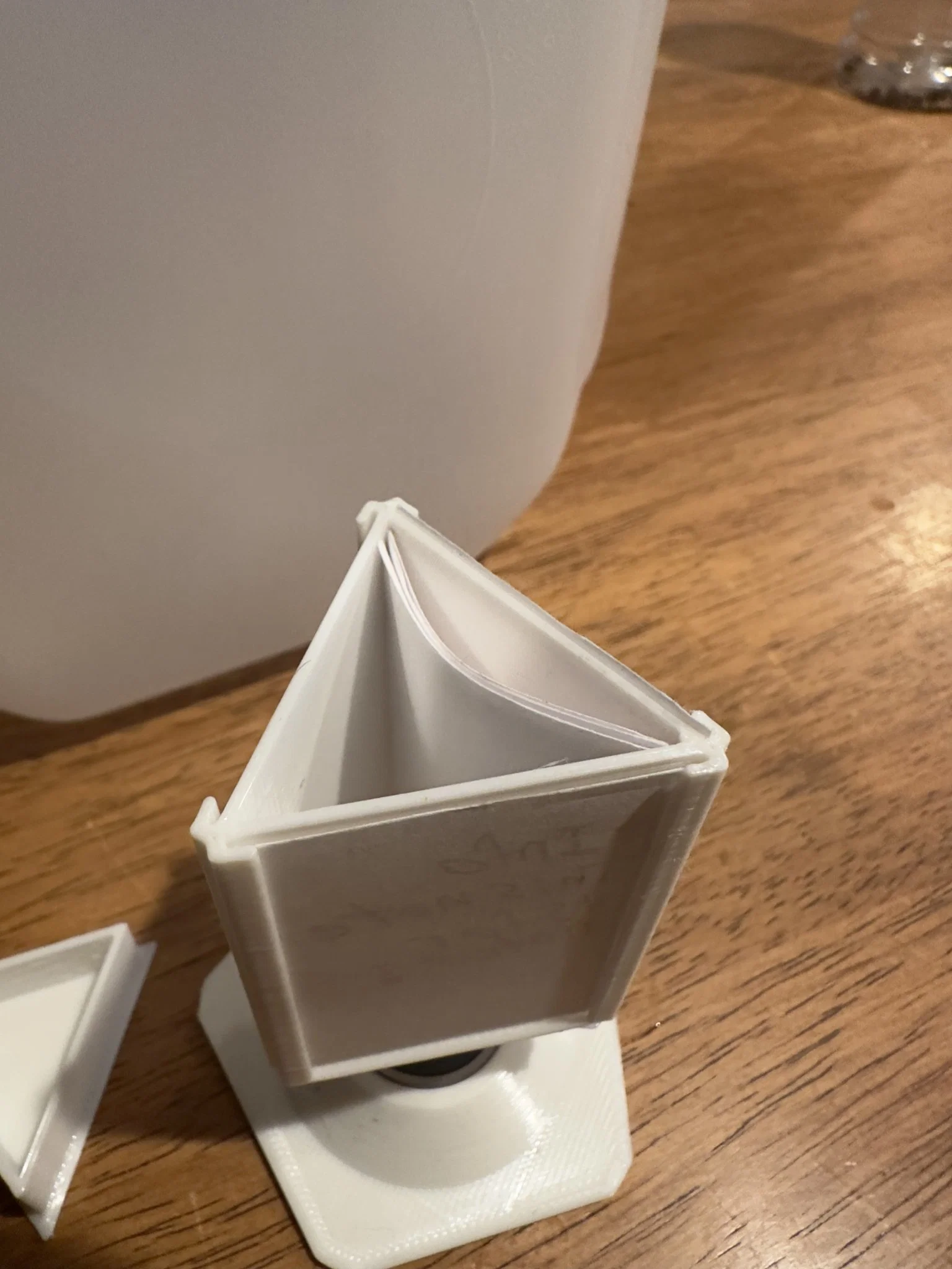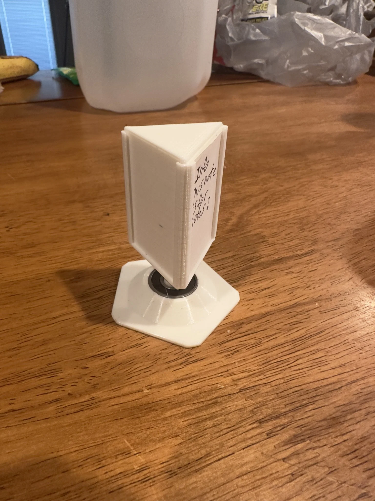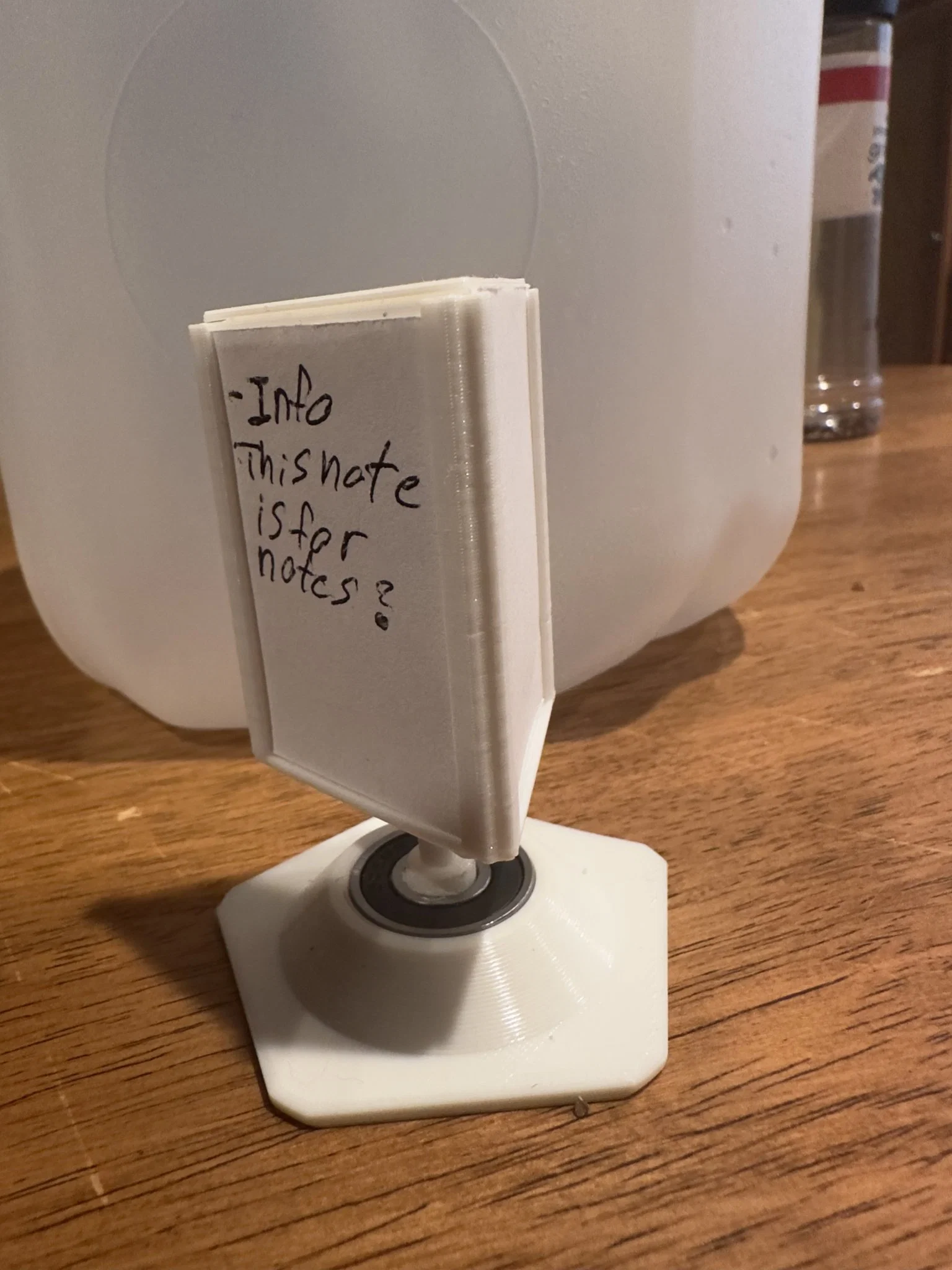 • Xoay 360 Độ: Sử dụng vòng bi 608, bảng có thể xoay mượt mà, cho phép bạn truy cập và hiển thị ghi chú hoặc lời nhắc một cách dễ dàng. • Kích Thước Giấy Tùy Chỉnh: Được thiết kế đặc biệt để chứa giấy có kích thước 48.1mm x 33.8mm (khoảng 1.89 inch x 1.33 inch), nó phù hợp với các thông điệp cá nhân hóa hoặc thông tin quan trọng của bạn một cách gọn gàng và hấp dẫn về mặt thị giác. • Ngăn Giấu: Ngăn lưu trữ kín đáo rất phù hợp để sắp xếp các vật dụng nhỏ, giữ cho bàn làm việc của bạn gọn gàng và không lộn xộn. • Nghệ Thuật In 3D: Được in 3D cẩn thận, Bảng Thông Tin Mini Xoay là minh chứng cho thiết kế và đổi mới hiện đại. Những đường nét thanh lịch và thiết kế chu đáo phản ánh sự chú ý đến chi tiết và chất lượng. • Yêu Cầu Lắp Ráp: Cùng với mô hình in 3D, một vòng bi 608 là cần thiết để kích hoạt chức năng xoay, tăng thêm sự vận hành liền mạch và cảm giác cao cấp của bảng.