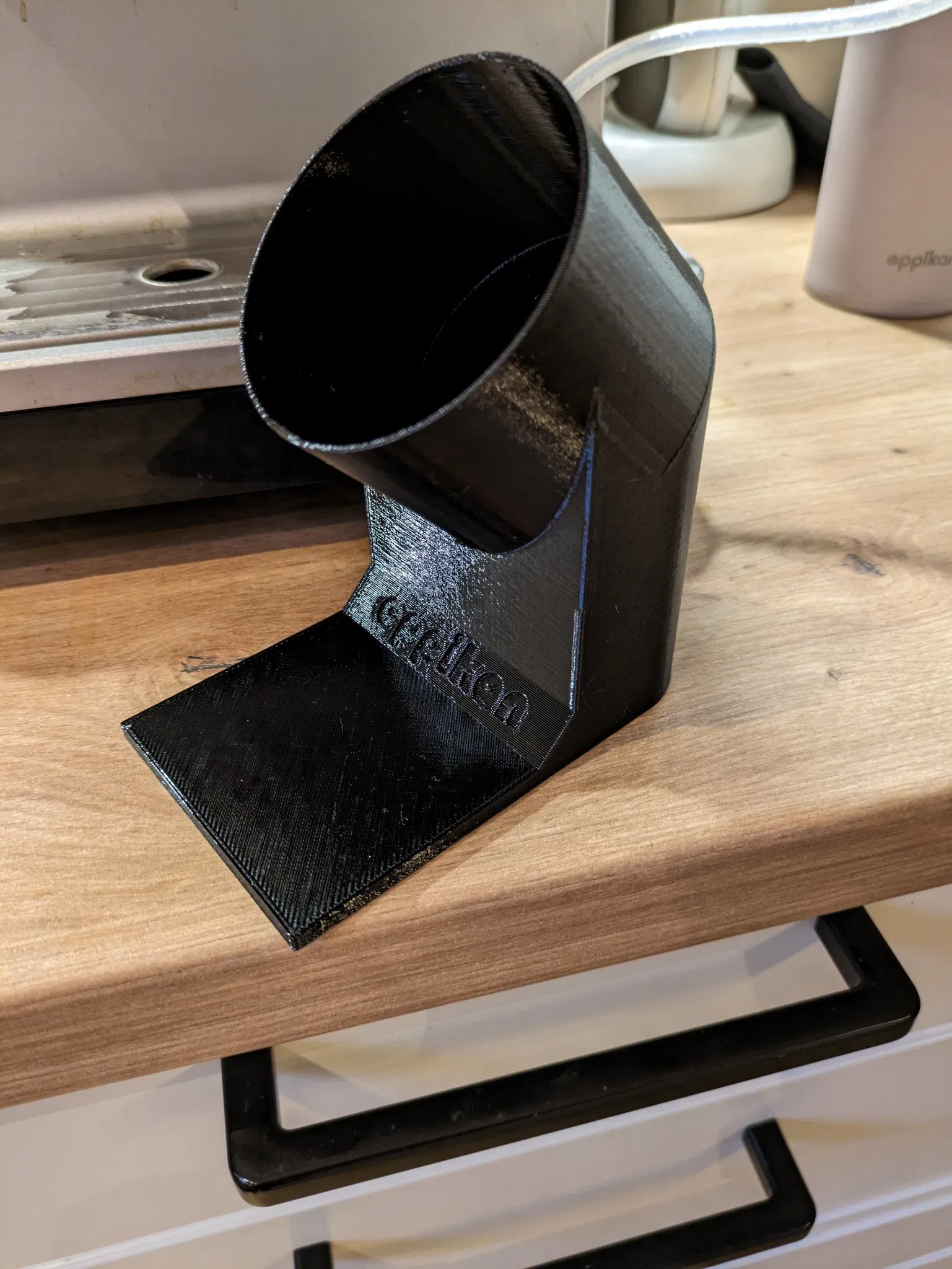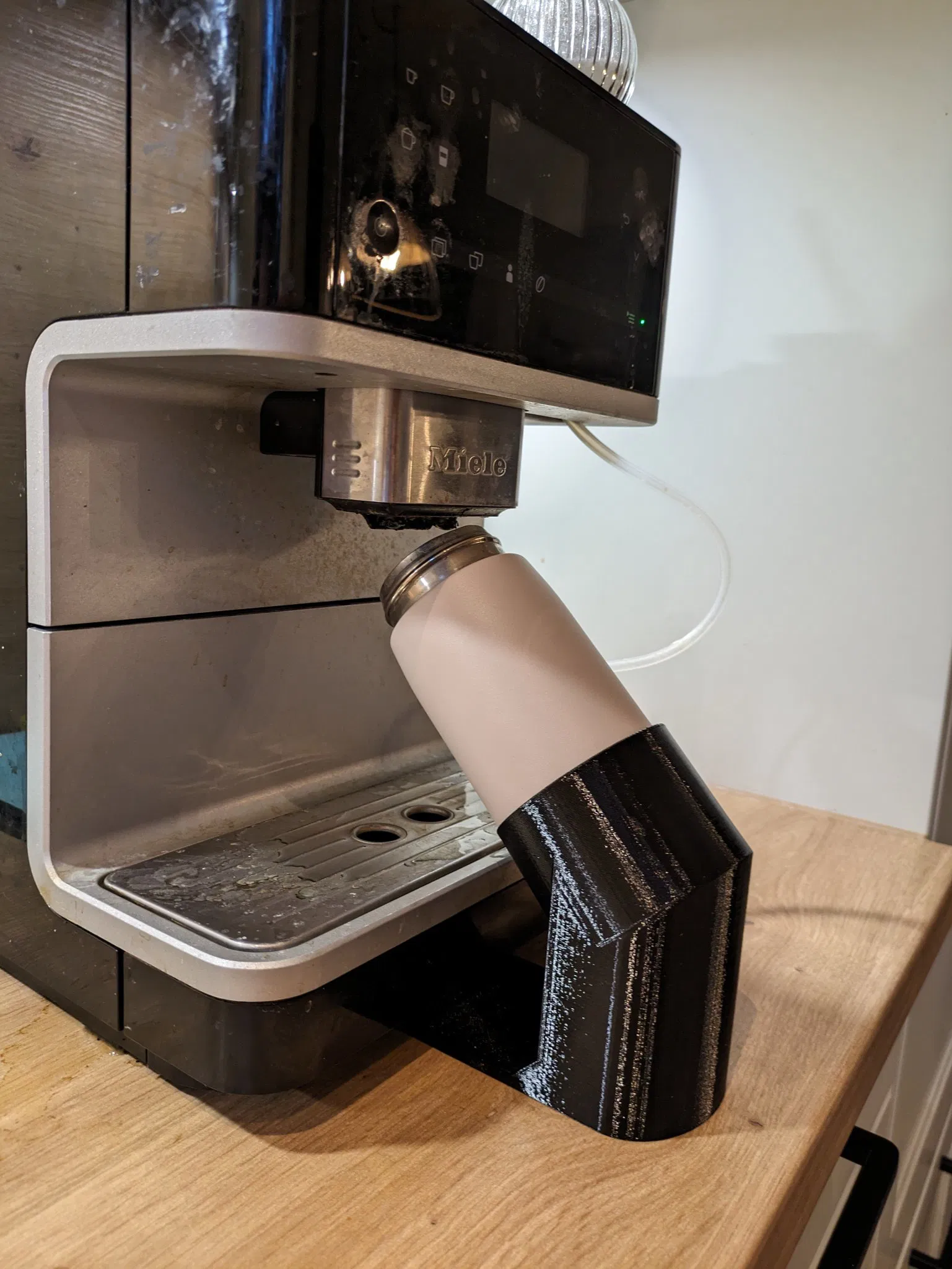 Cái cốc cà phê eppikan của tôi không đặt vừa bên dưới máy pha cà phê miele của tôi khi dựng đứng, nên tôi đã làm ra cái này.