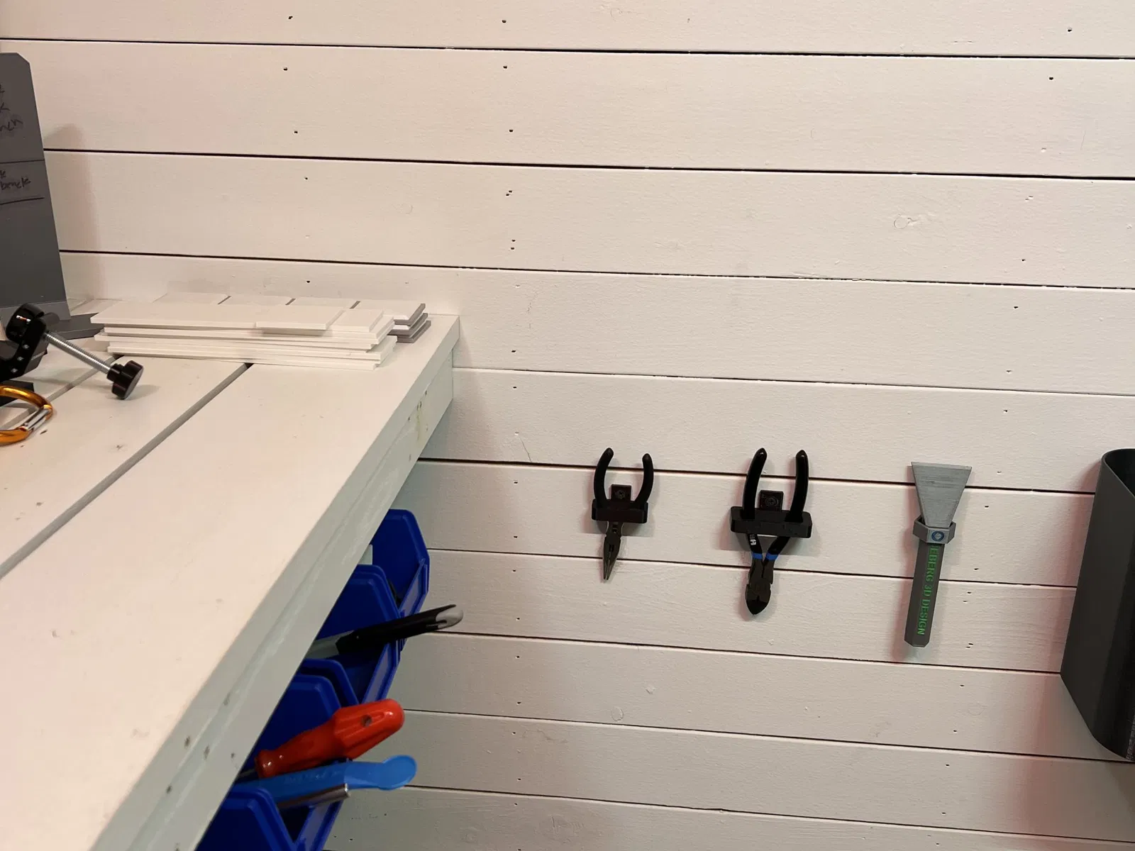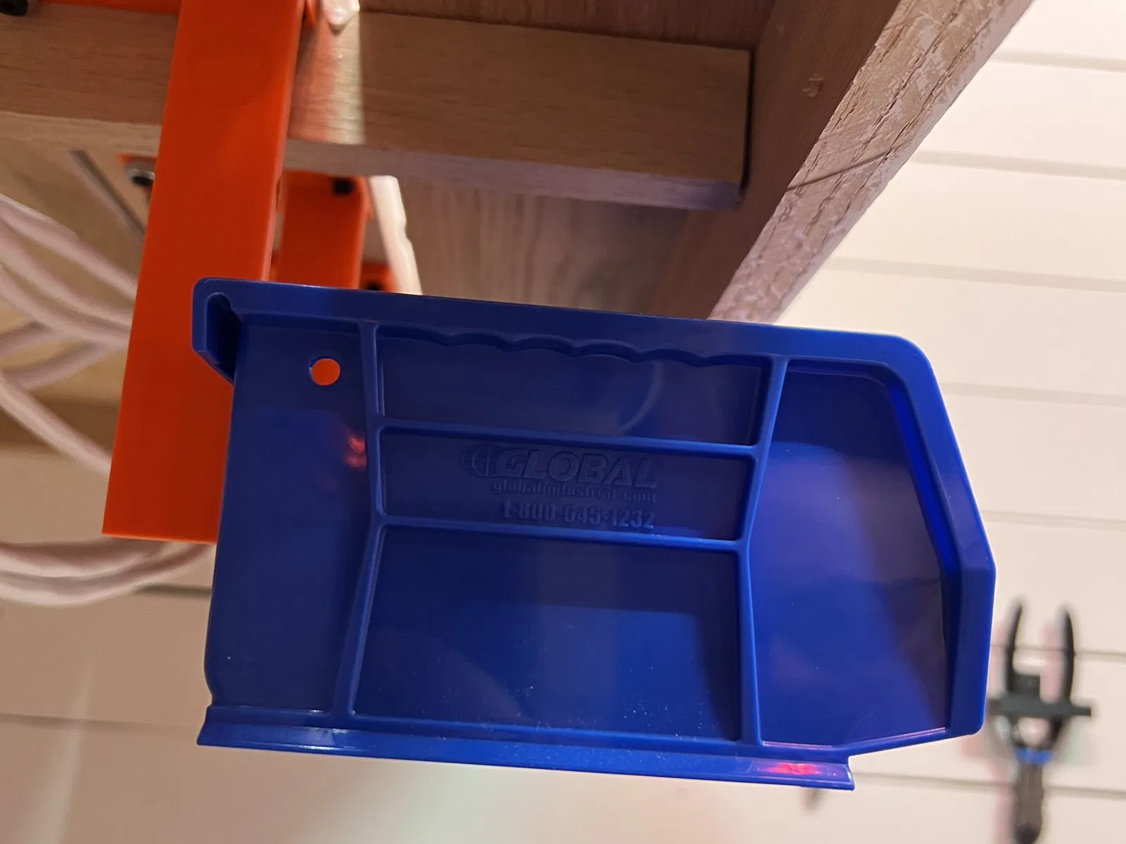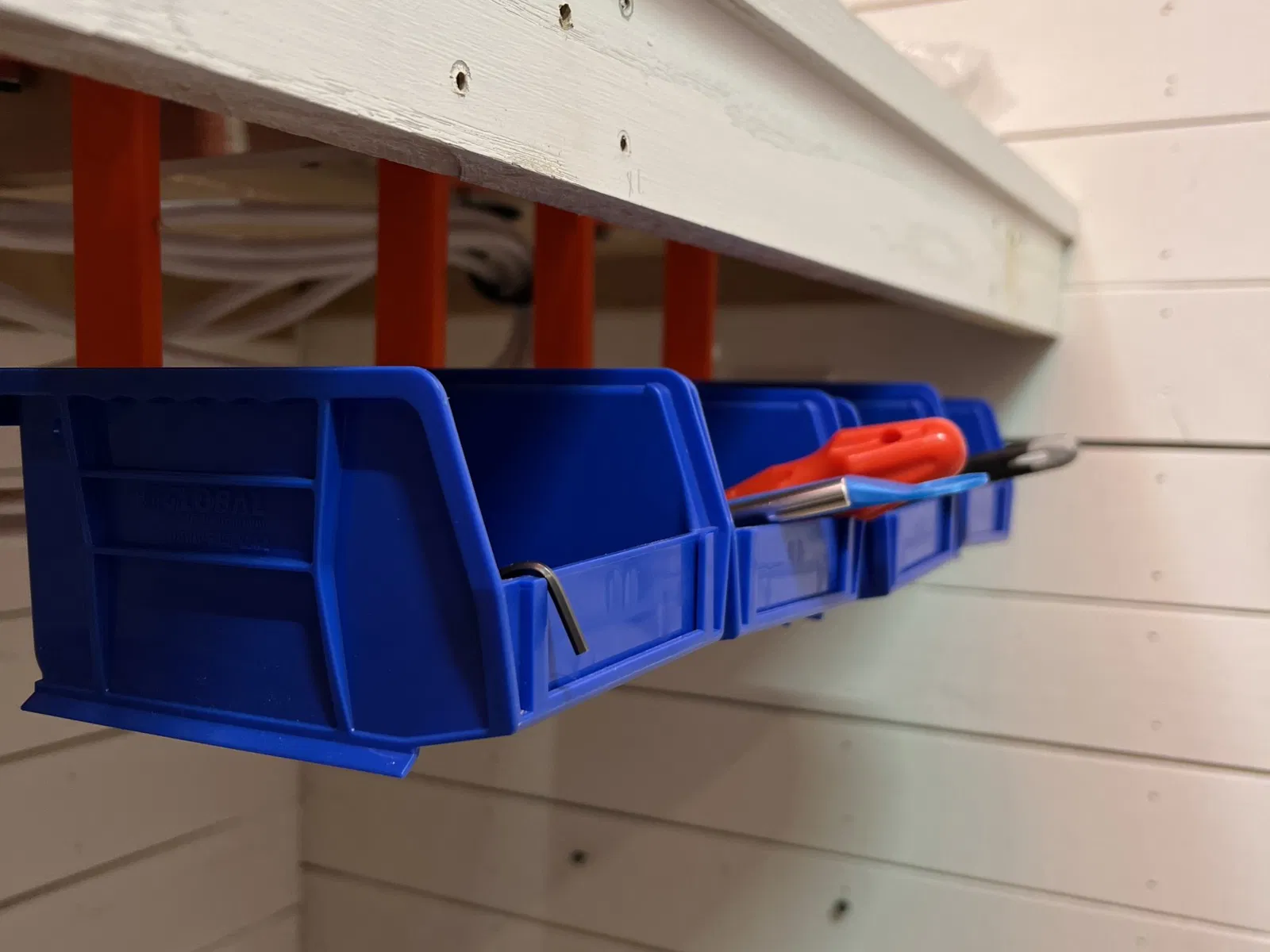 Cái này bắt vít dưới gầm bàn làm việc, để đựng mấy cái thùng có thể xếp chồng lên nhau và có gờ ở phía sau.
