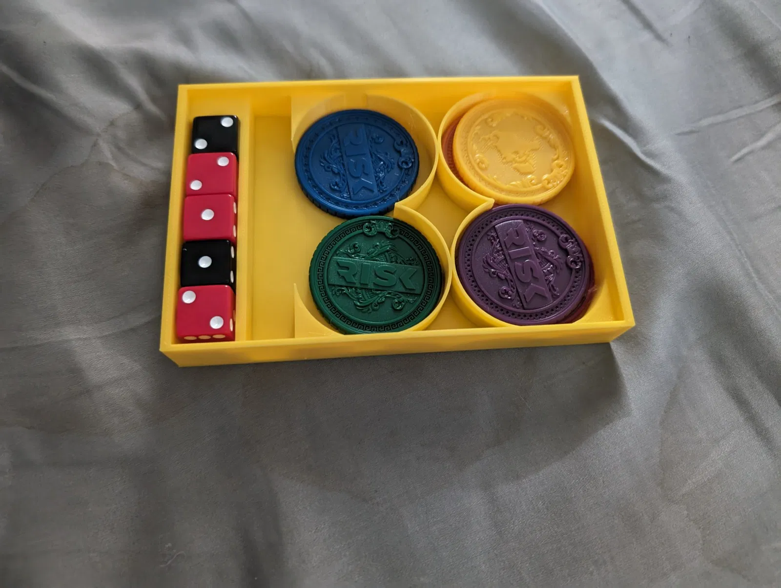 Hộp để lưu trữ trò chơi thẻ tấn công rủi ro. Nó thực sự dễ dàng để in, phù hợp với tất cả các bộ phận và có thể được thực hiện trong bất kỳ màu sắc nào.